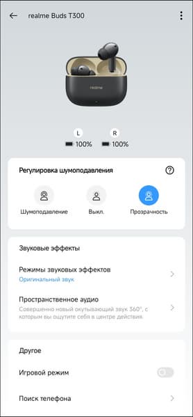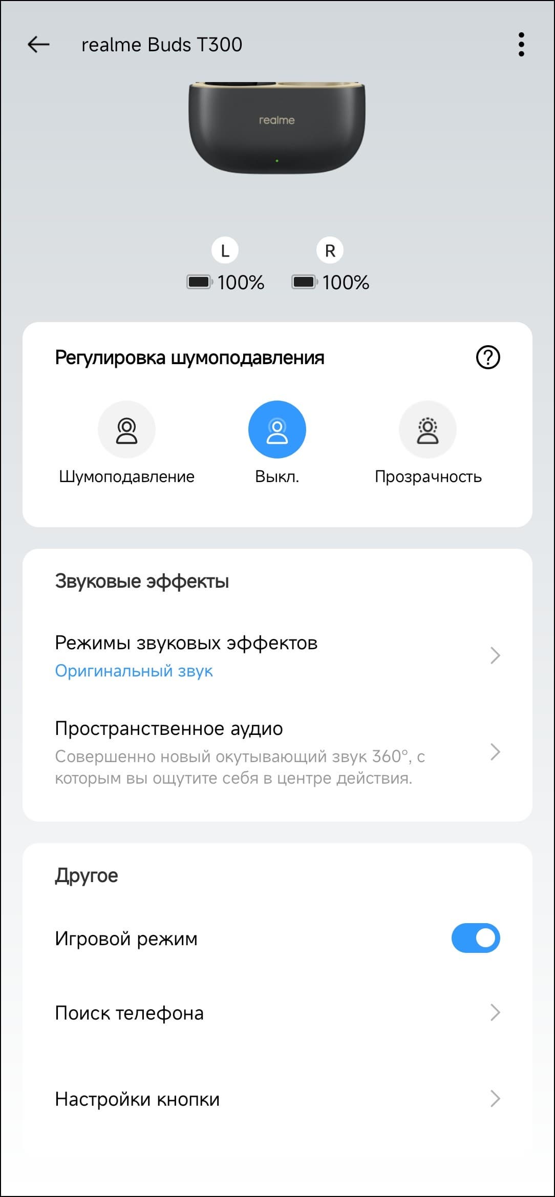 Приложение Realme Link мы так или иначе разбирали во всех обзорах, ссылки на которые были выше. Потому сегодня не будем вдаваться в подробности — просто пробежимся по настройкам, которые доступны для тестируемой гарнитуры.