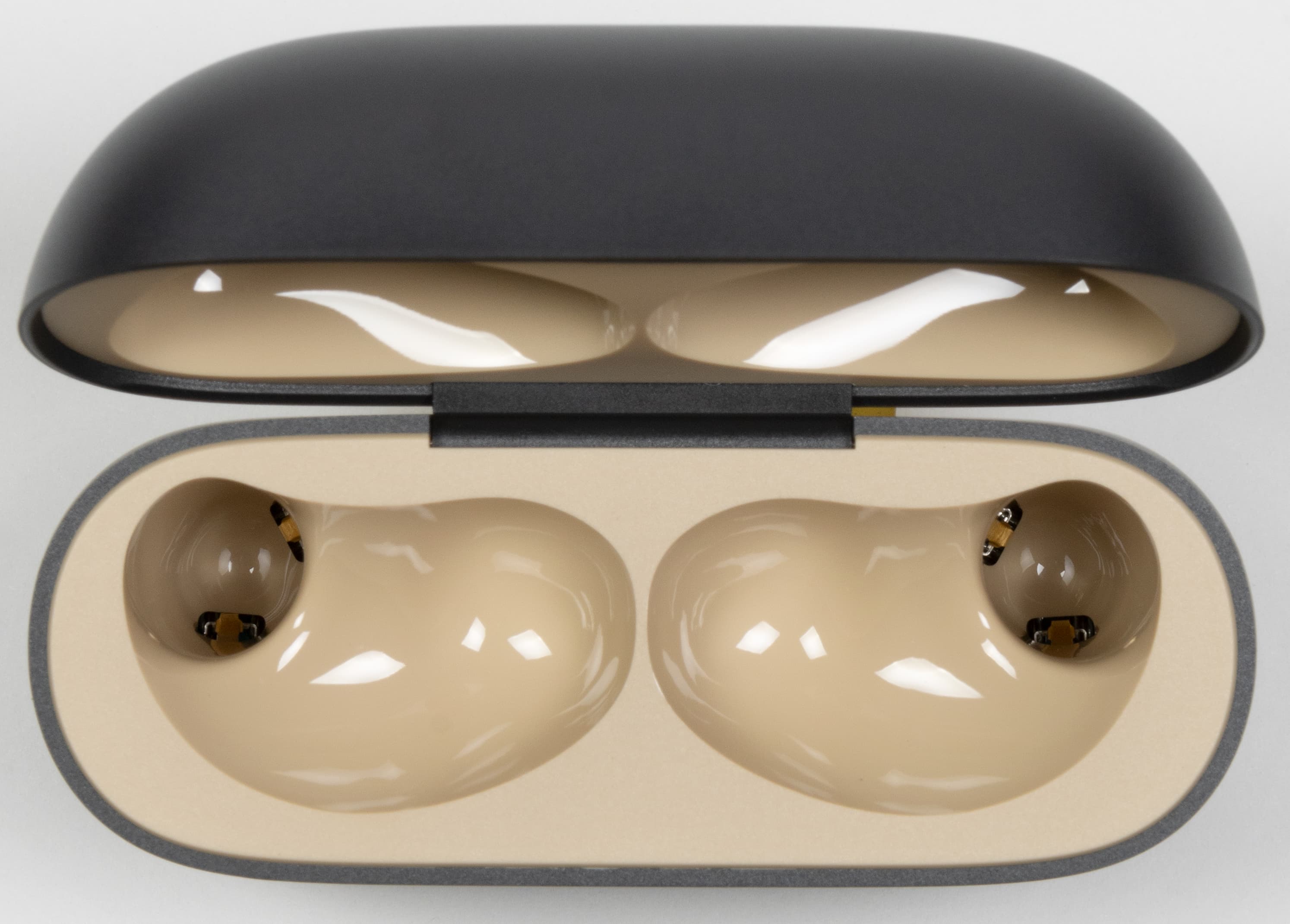 В своих слотах наушники надежно удерживаются магнитами, при этом вынуть их из кейса можно, просто слегка потянув на себя, а потом вверх.