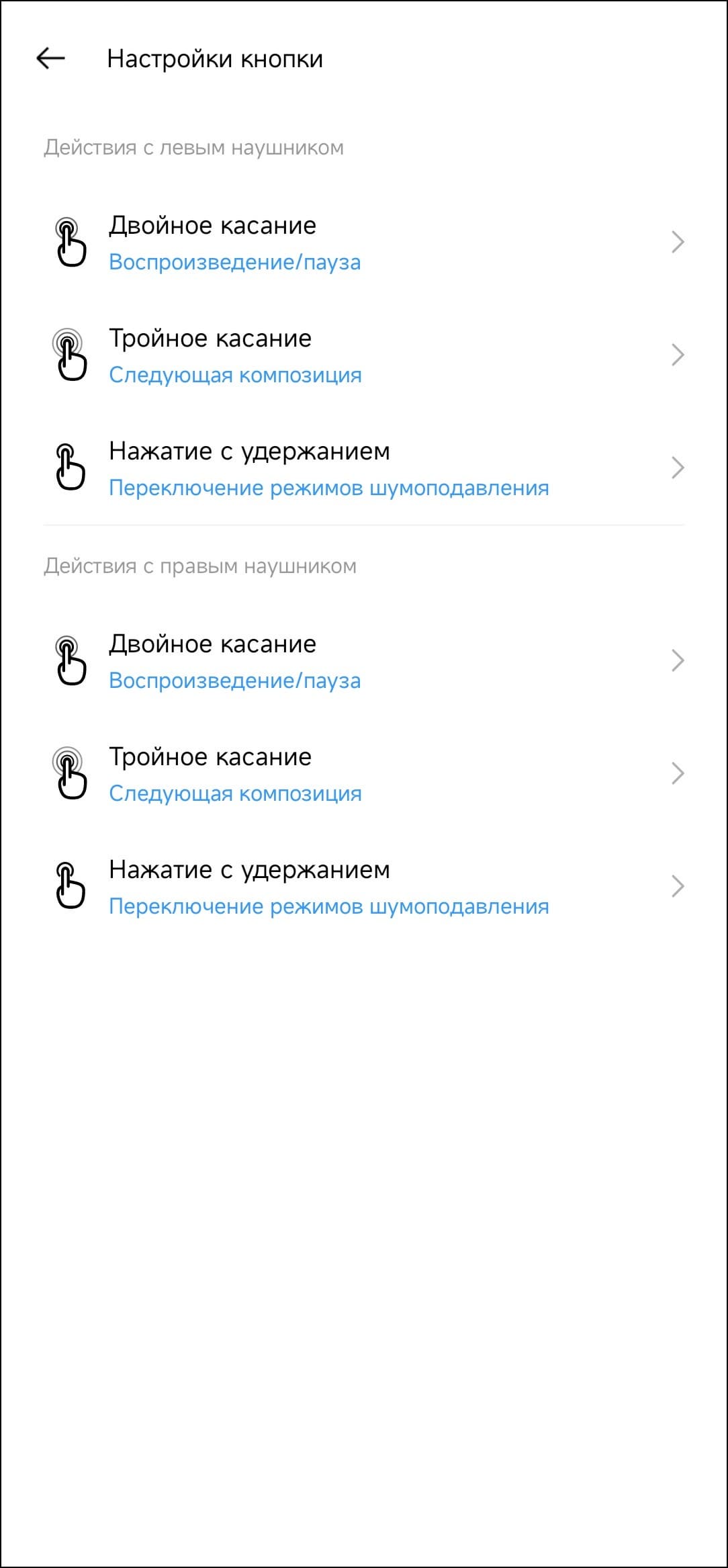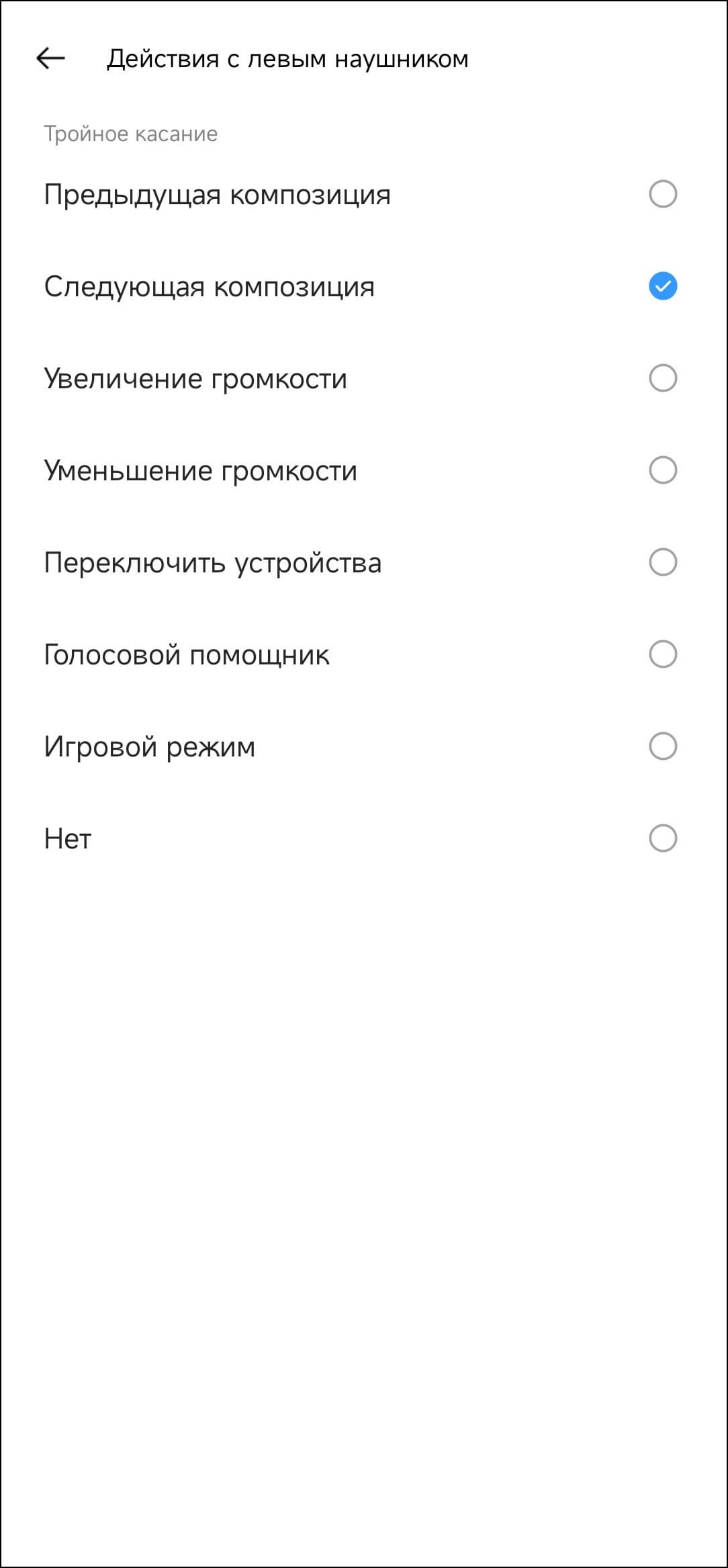 Как и в других актуальных гарнитурах Realme, управление настраивается отдельно для правого и левого наушника, доступны все самые востребованные действия, включая изменение громкости.