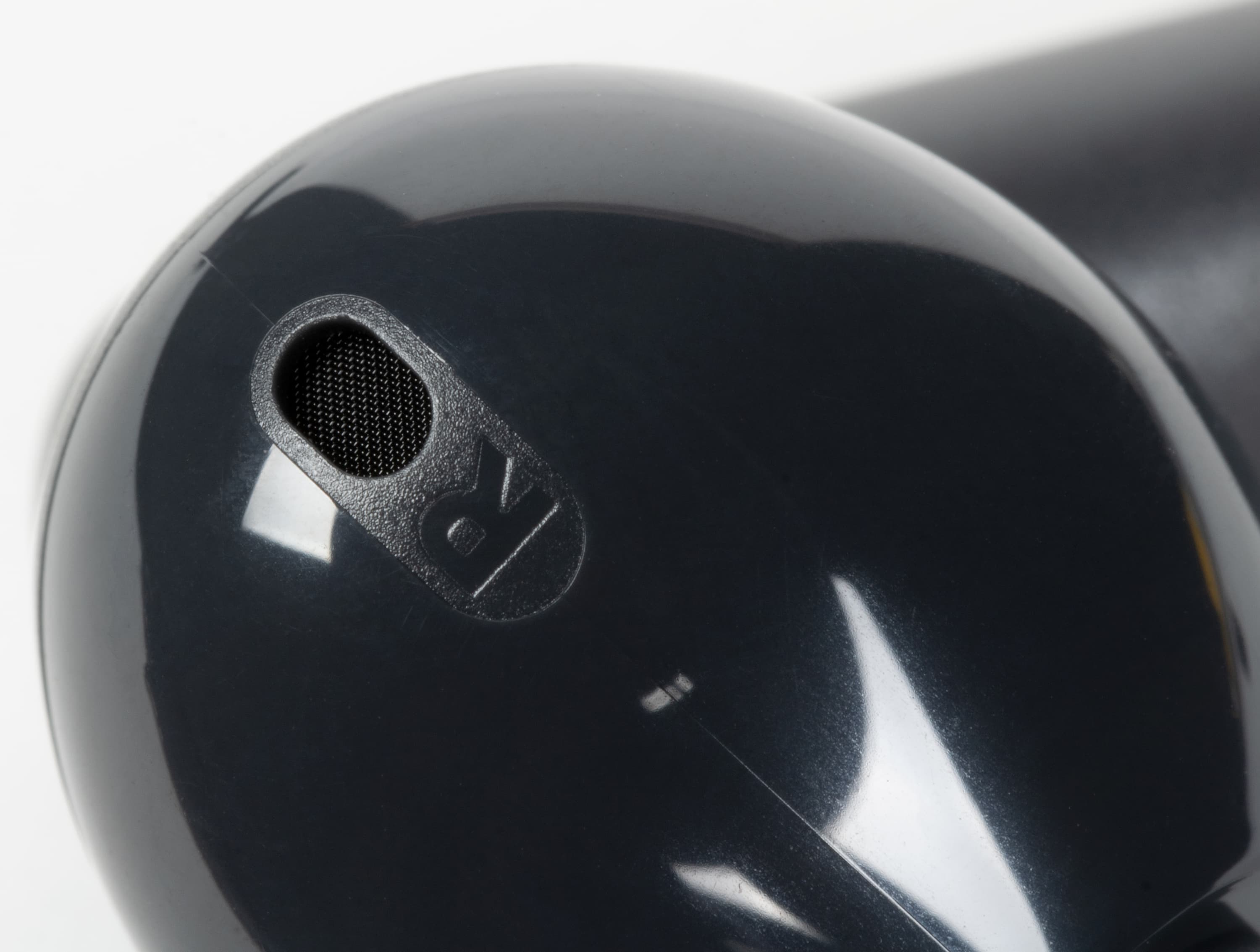 Итак, внутренний микрофон системы шумоподавления размещен на округлой части, обращенной при ношении к уху.