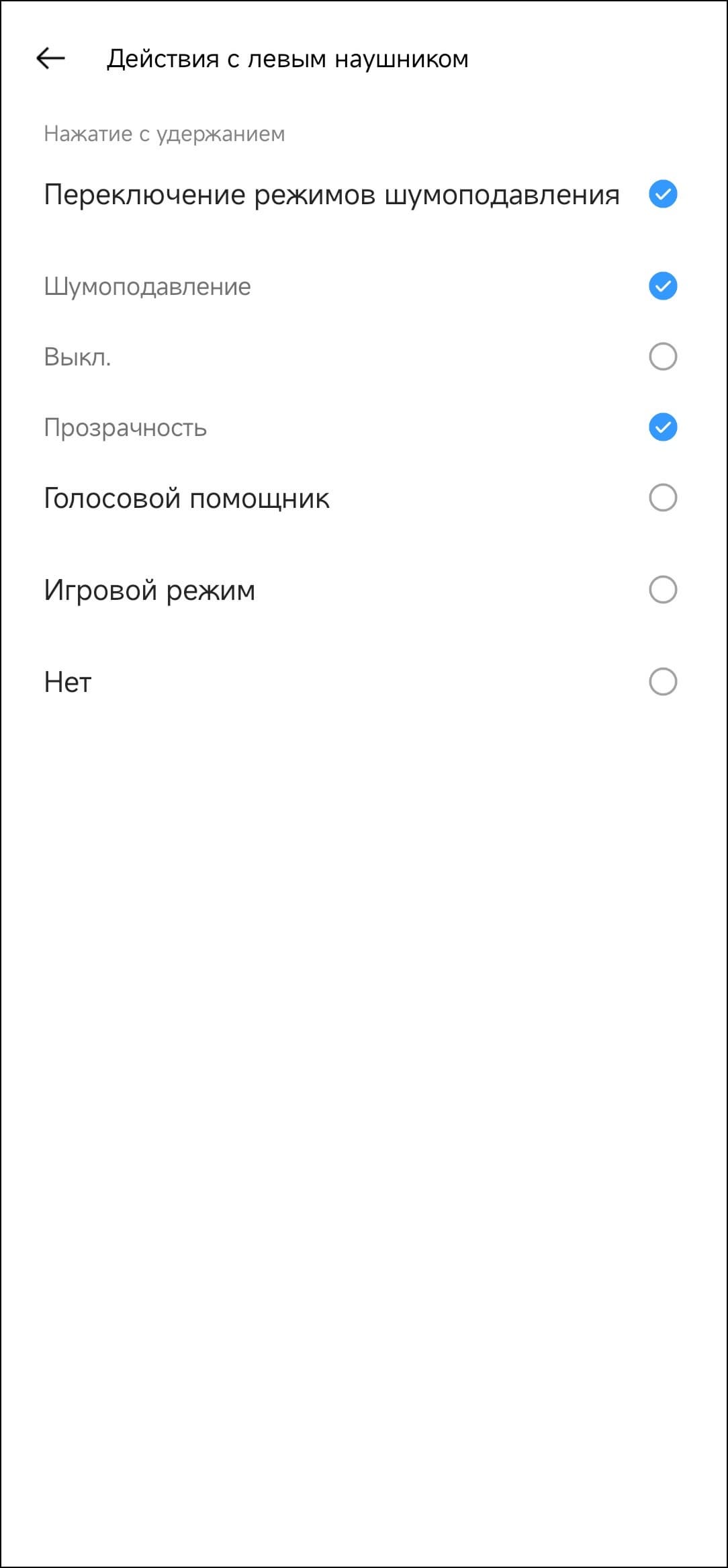 Активное шумоподавление можно включить и выключить — различных режимов его работы, как у Realme Buds Air 5, не предусмотрено. А вот эквалайзер полноценный — не хуже, чем у флагманов. С готовыми пресетами и возможностью создавать свои.