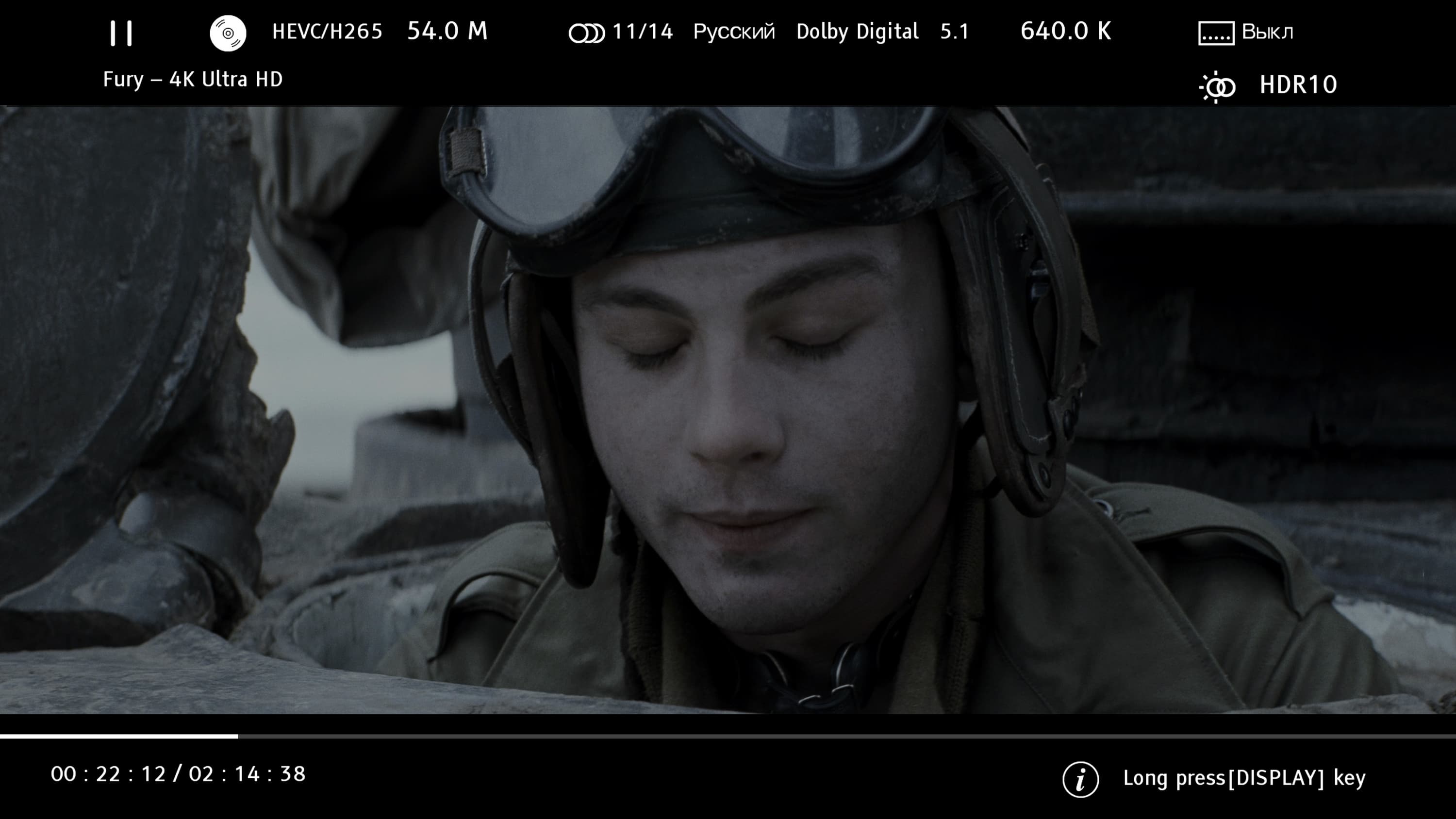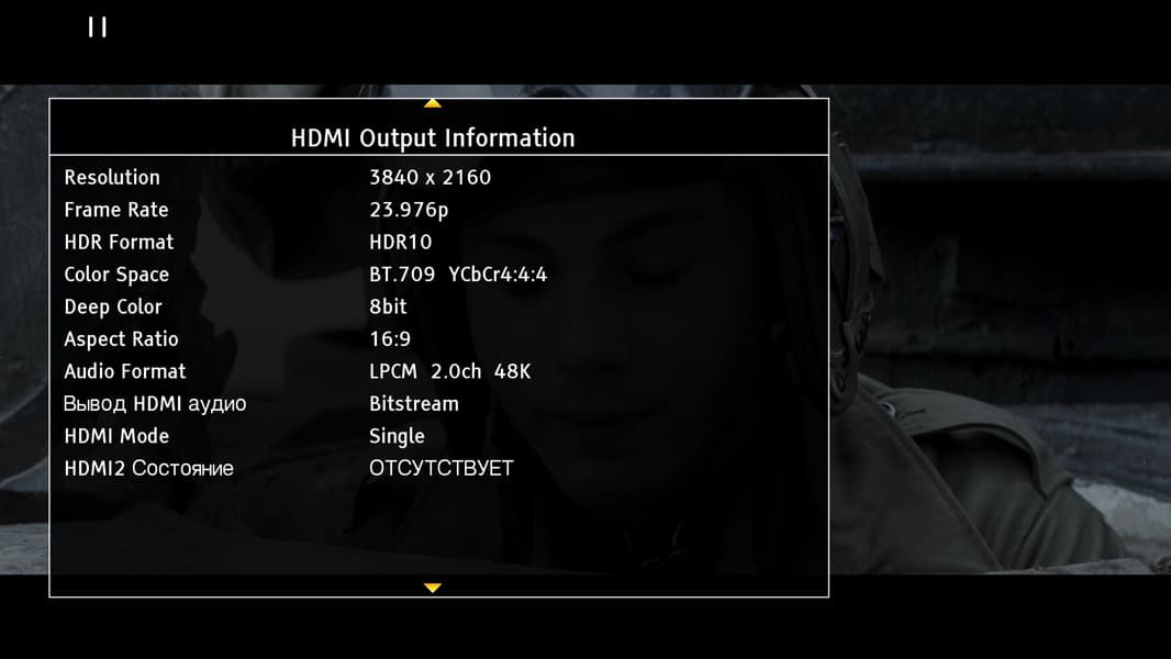 Это же касается и воспроизведения HDR-контента. Причем совершенно неважно, что собой представляет исходник: диск Ultra HD Blu-ray либо файл на флэшке или сетевом накопителе. Если в настройках плеера (а их мы уже изучили) активирована передача расширенного цветового пространства, то плеер при наличии такого формата немедленно переключится в HDR.
