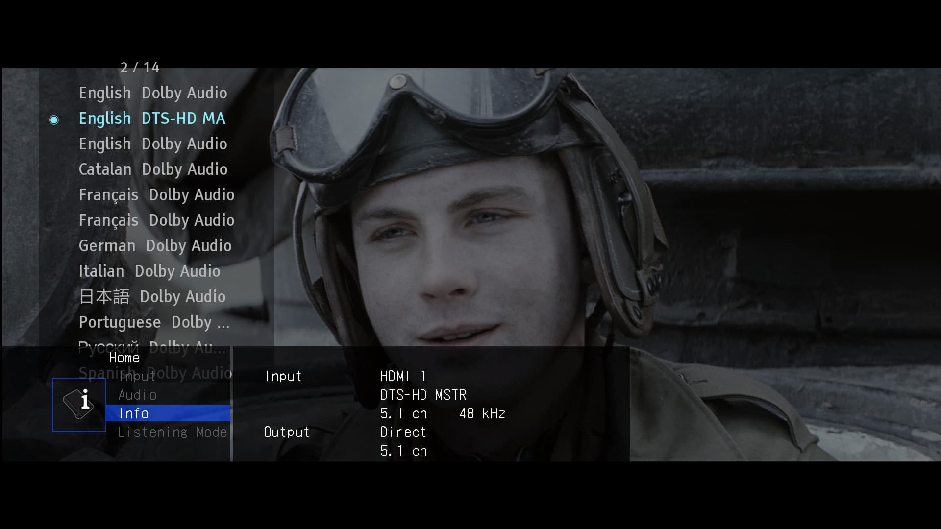 Далее, как водится, следуют манипуляции с выбором языковой дорожки или сцены. Впрочем, если вы в настройках плеера заранее выбрали нужный язык аудио, то никаким выбором заниматься не надо: диск запустится именно с этим языком (если он был добавлен производителем при авторинге).