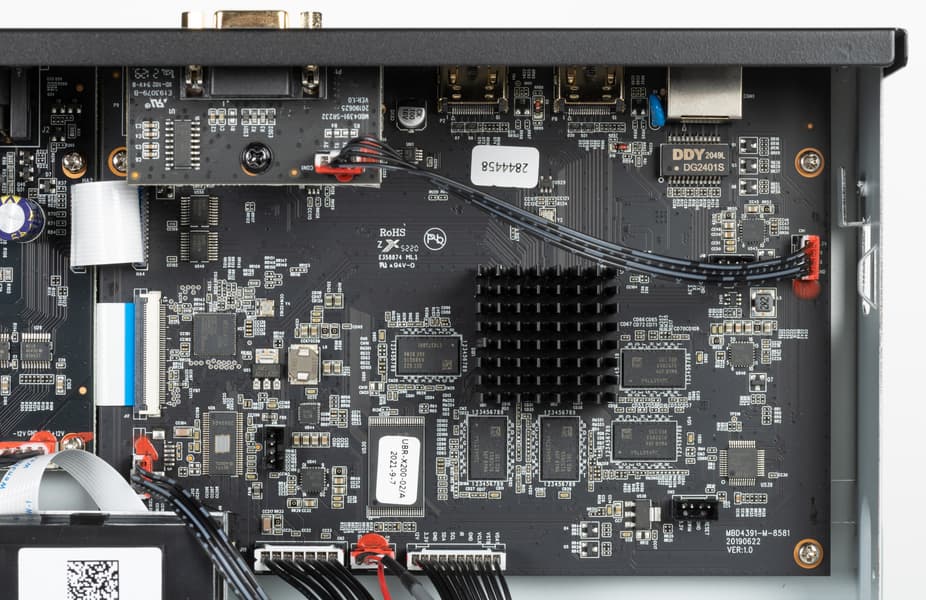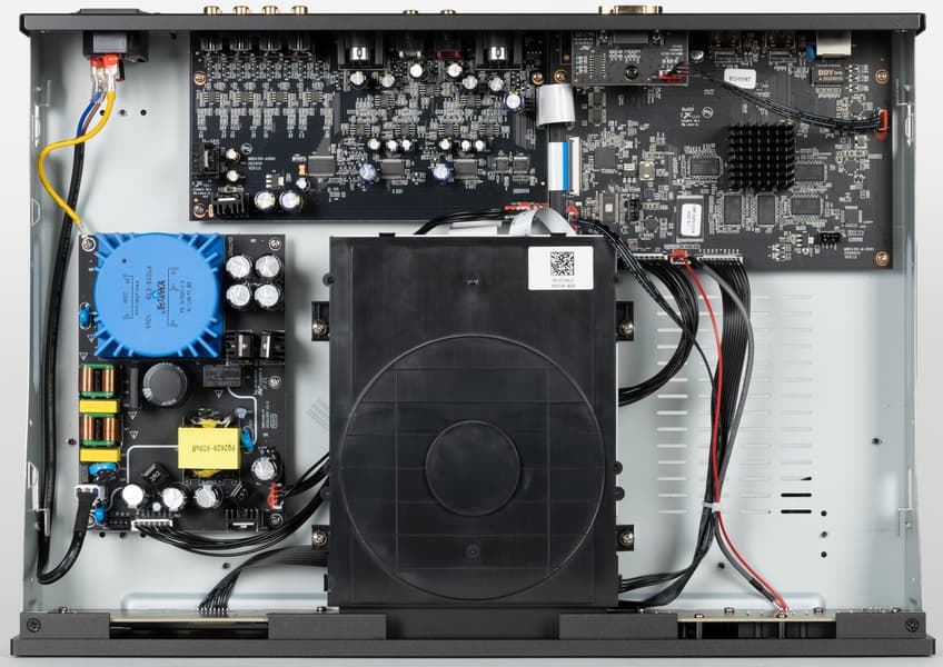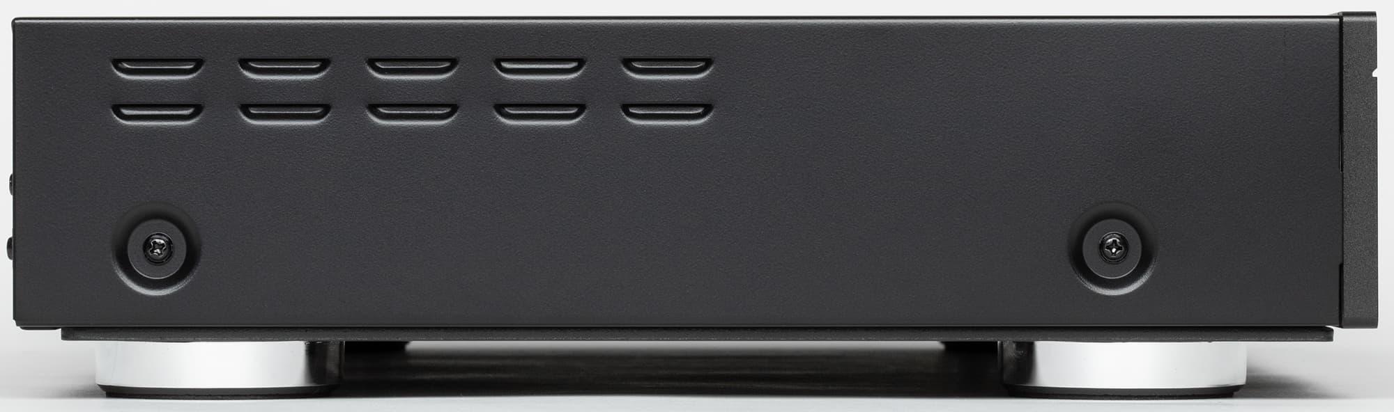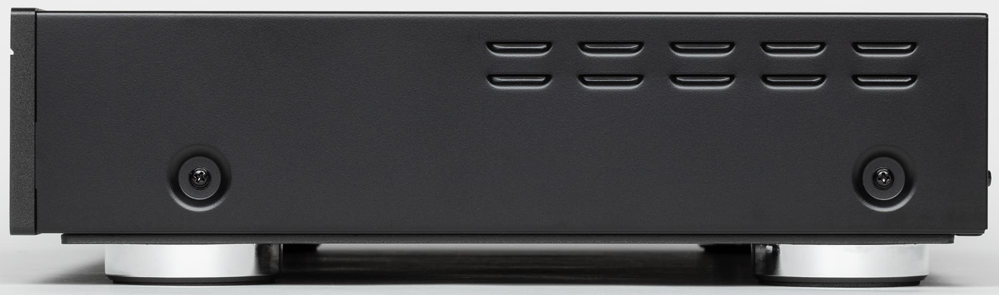 Системы принудительного охлаждения в плеере нет, и это хорошо — тишина, никаких вентиляторов. Теплообмен обеспечивается за счет вентиляционных прорезей в корпусе, а также благодаря массивной металлической крышке, которая выполняет функцию радиатора.
