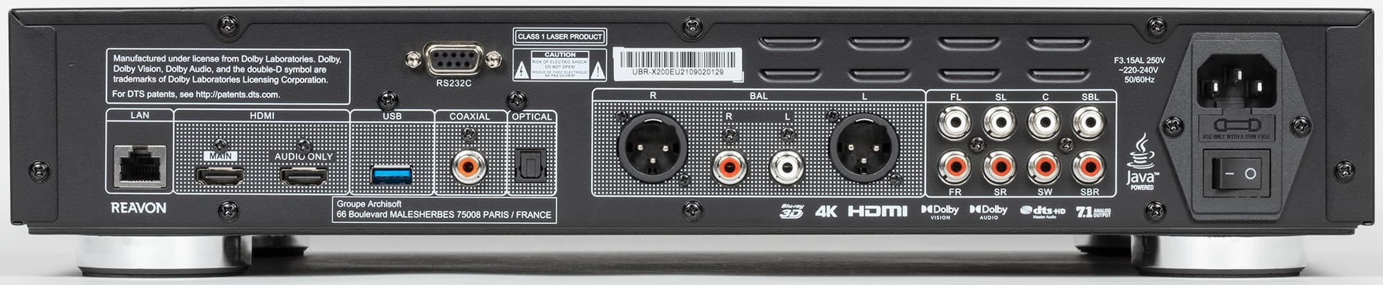 | Поддерживаемые типы оптических дисков | UHD Blu-ray, Blu-ray, Blu-ray 3D, DVD-Video, DVD-Audio, AVCHD, SACD (UBR-X200), CD, Kodak Picture CD, CD-R/RW, DVD±R/RW, DVD±R DL, BD-R/RE |