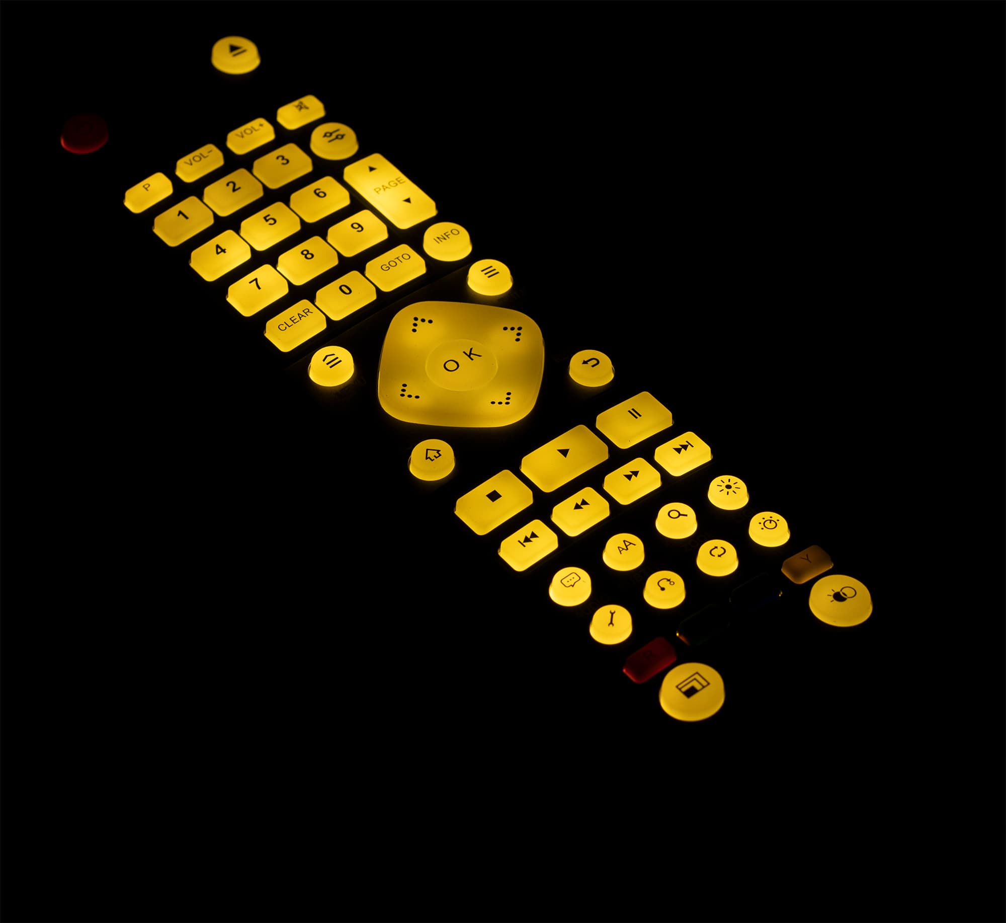 Кнопки прилагаемого пульта ДУ изготовлены из матового мягкого пластика, они имеют мягкий ход и четкий отклик без раздражающих щелчков. Встроенная теплая подсветка включается отдельной кнопкой, при этом подсвечиваются все кнопки без исключения.