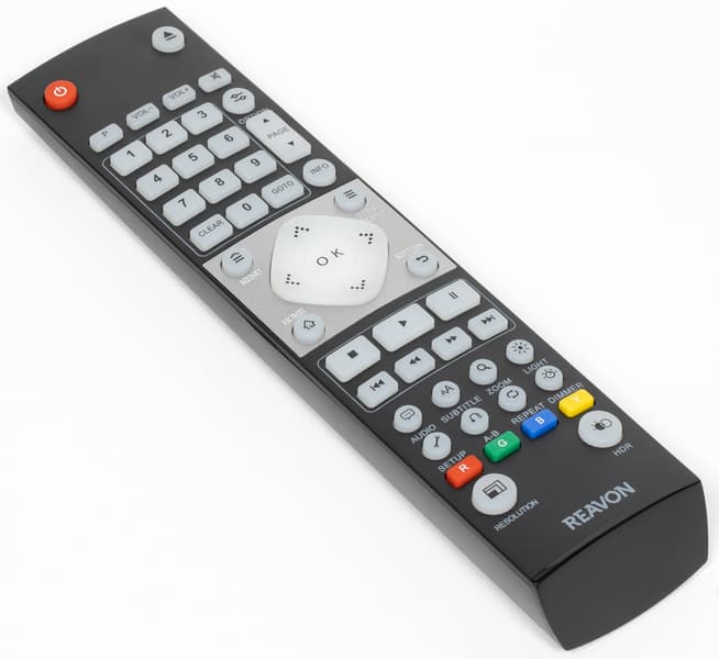Состав кнопок полностью покрывает функциональность плеера, здесь предусмотрены отдельные кнопки на такие операции, как изменение соотношения сторон, выбор субтитров и звуковых дорожек и т. д. Жаль, что не предусмотрен отдельный блок обучаемых кнопок для управления телевизором или аудиоресивером.