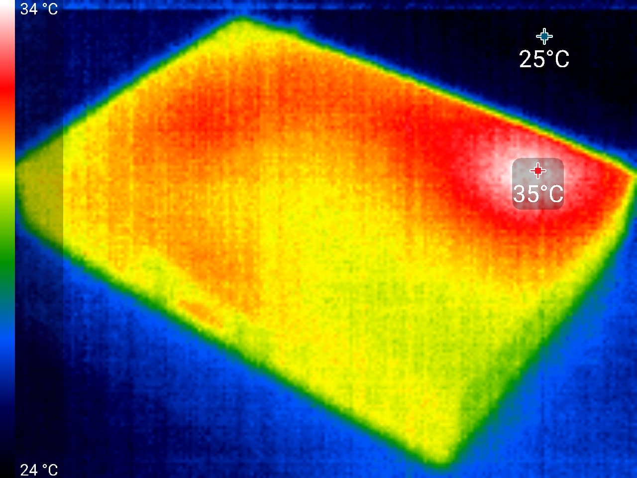 Во время длительной работы корпус плеера остается чуть теплым, максимальная температура одного из дальних участков металлической крышки достигла лишь 37 °C (свидетельство работы процессора). И это после двухчасового воспроизведения диска UHD Blu-ray. Тестирование проводилось при комнатной температуре около 25 °C.