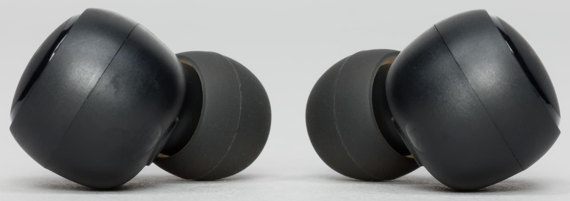 1More Stylish True Wireless имеют каплевидную форму. Больше всего в их дизайне обращают на себя внимание резиновые детали, служащие для дополнительной фиксации наушников в ушной раковине — к ним мы еще вернемся отдельно.