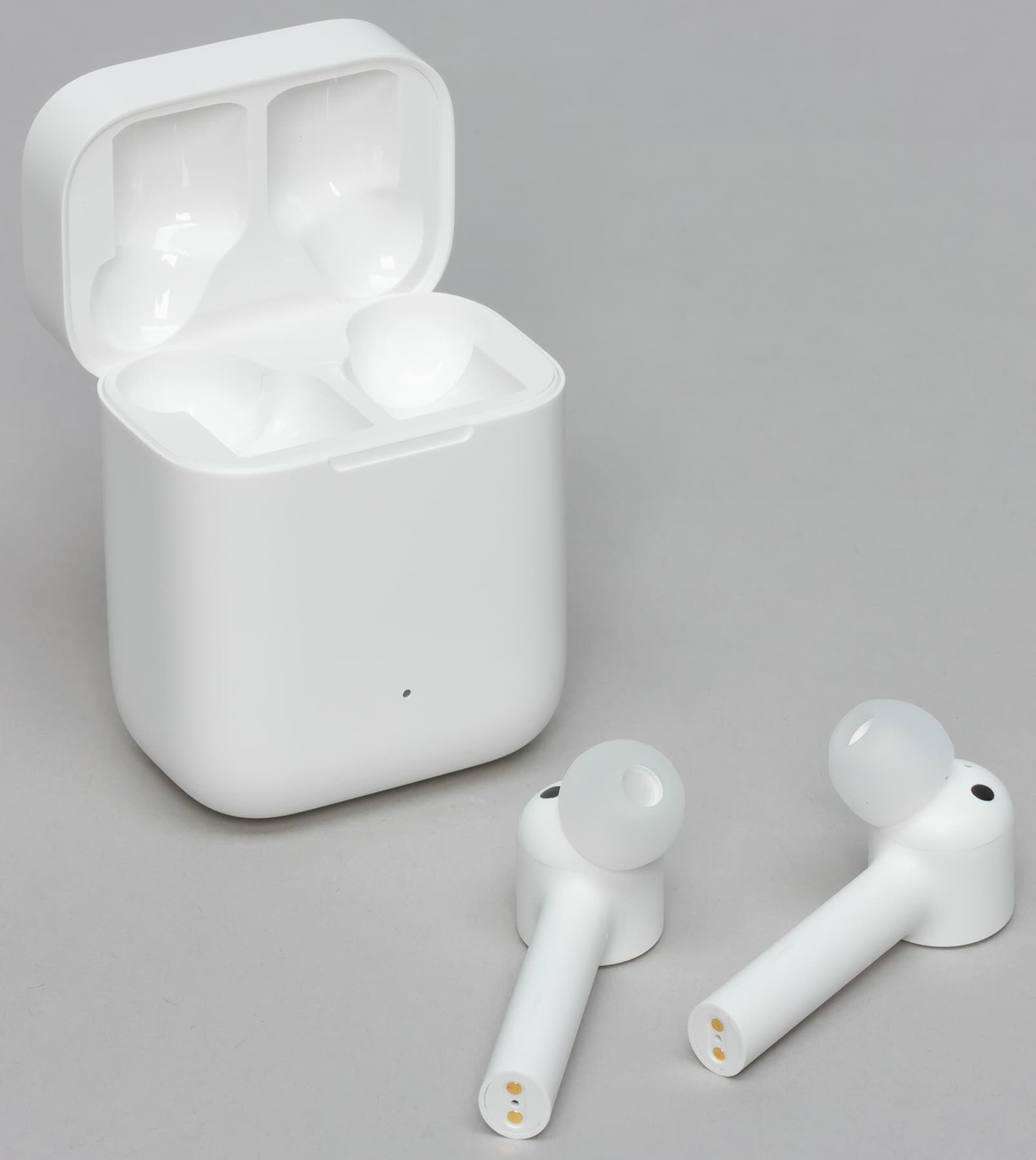 Далее гарнитура чуть подороже — Xiaomi Air Mi True Wireless Earphones, которую также периодически называют AirDots Pro. Дизайн «с палочками», напоминающий продукт другого известного производителя, наличие активного шумоподавления, поддержка кодека AAC — в общем, весьма интересное устройство.
