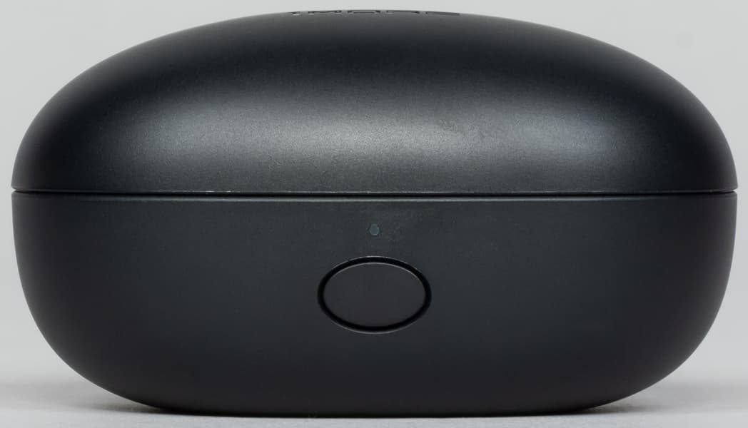 Ну и, наконец, 1More Stylish True Wireless. Самые дорогие наушники в сегодняшнем обзоре с претензией на «премиальный» сегмент. Но вот по кейсу этого, честно говоря, не скажешь. Пластик простенький, склонен к появлению царапин и отпечатков пальцев. Из-за достаточно крупных габаритов и яйцевидной формы его неудобно носить в кармане. Но есть у него и положительные черты: например — подпружиненная крышка без какого-либо люфта, открываемая с помощью кнопки на передней панели, где также можно заметить небольшой индикатор зарядки.