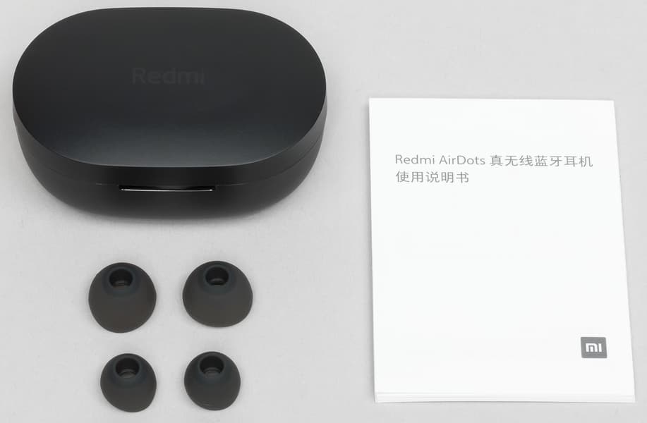 В комплекте — самый минимум. Кейс с наушниками, две пары сменных амбушюров, да инструкция на китайском. Нет даже кабеля для зарядки — все ради удешевления. Вариантов цветового оформления два: черный и белый. У нас на тестировании была черная версия.