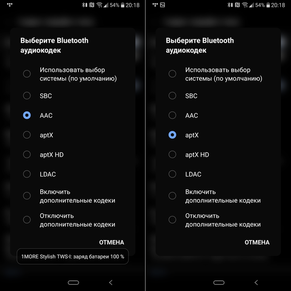 Единственный неприятный момент здесь — сравнительно продолжительное время подключения после извлечения из кейса, которое может достигать до 10 секунд. В отличие от остальных героев сегодняшнего теста, 1More Stylish TW поддерживает кодек aptX — на радость владельцам гаджетов на Android. При этом по умолчанию многие Android-устройства могут использовать AAC — при желании использовать именно aptX его придется активировать в соответствующем меню.