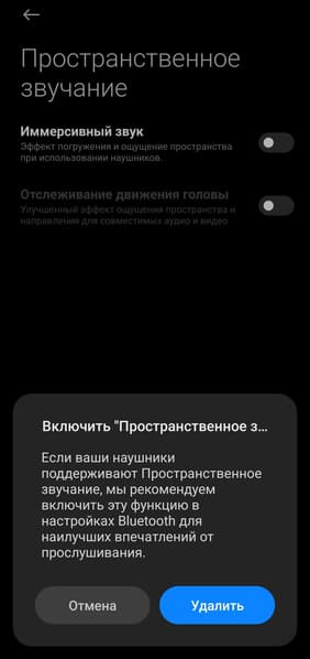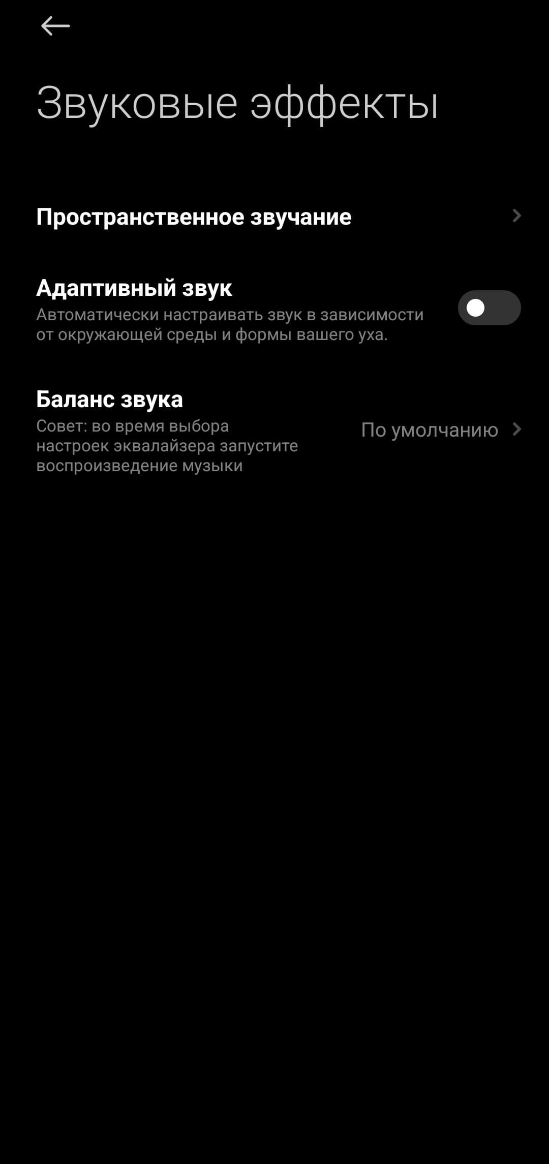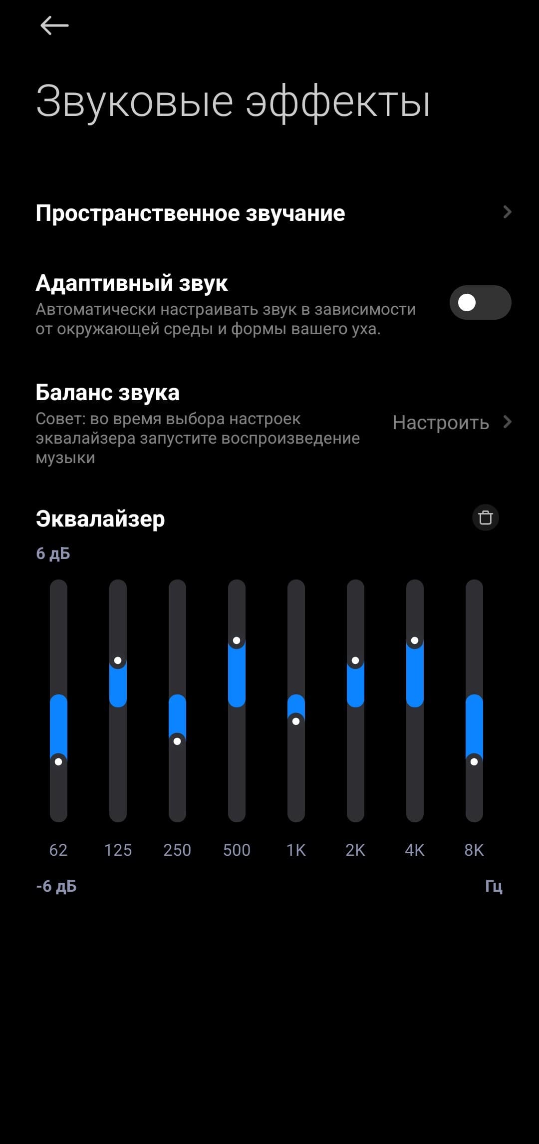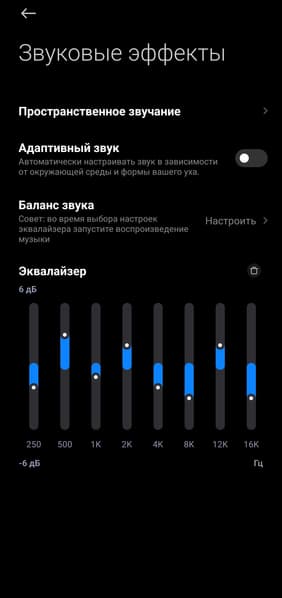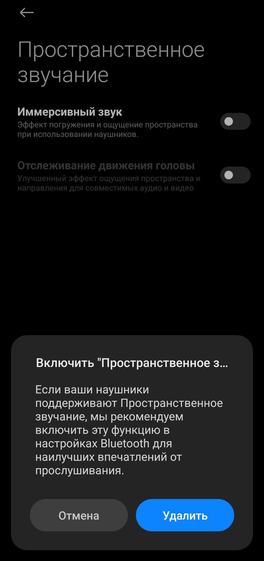 Еще одна особенность Redmi Buds 6 Pro — так называемое пространственное звучание, достигаемое за счет небольших изменений тонального баланса и добавления эффекта реверберации. Свои профили есть для разных типов контента: музыки, видео, игр и аудиокниг. Работает это всё интересно, звучание получается несколько более эффектным, но на яркий вау-эффект рассчитывать не стоит. Что же касается «иммерсивного звука» с отслеживанием движения головы, то с совместимым контентом можно получить довольно любопытный опыт.