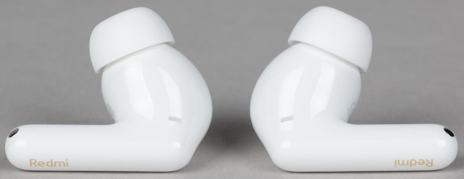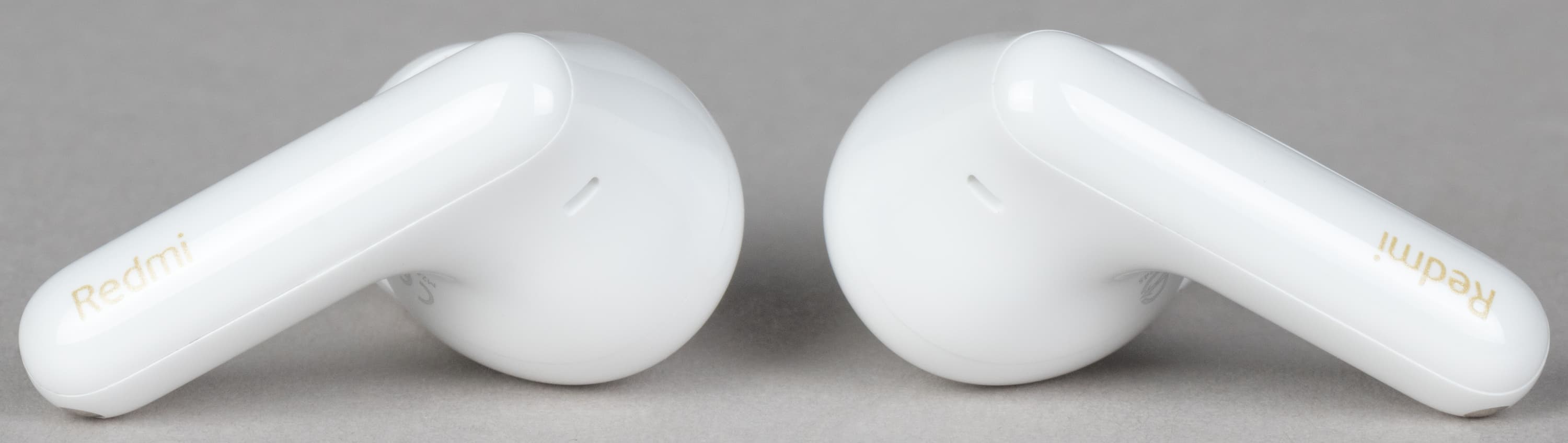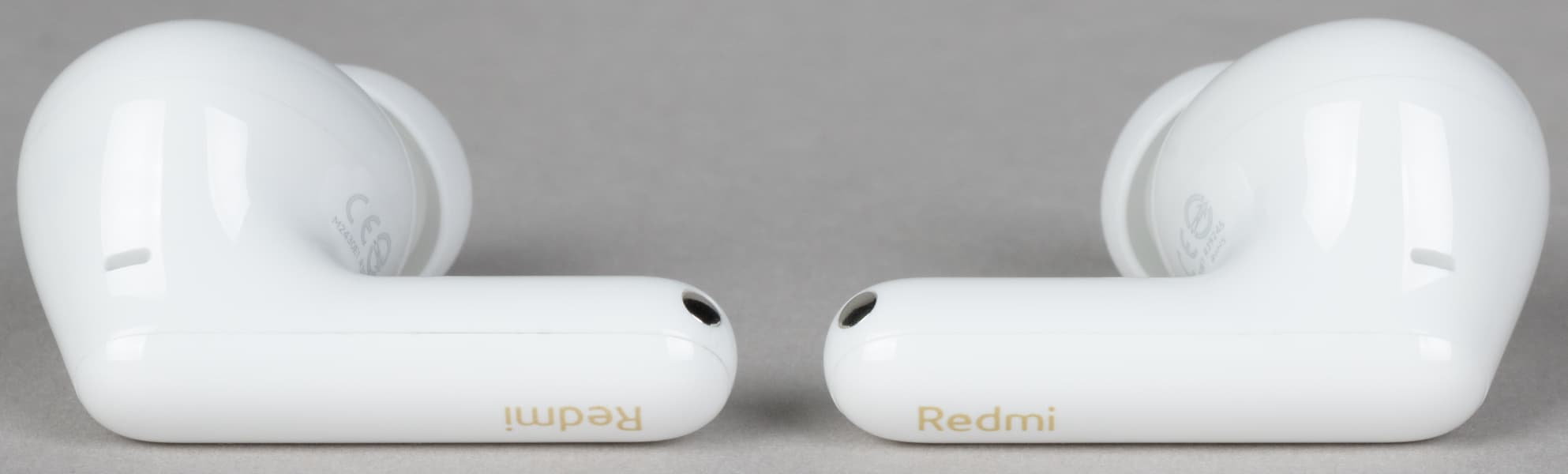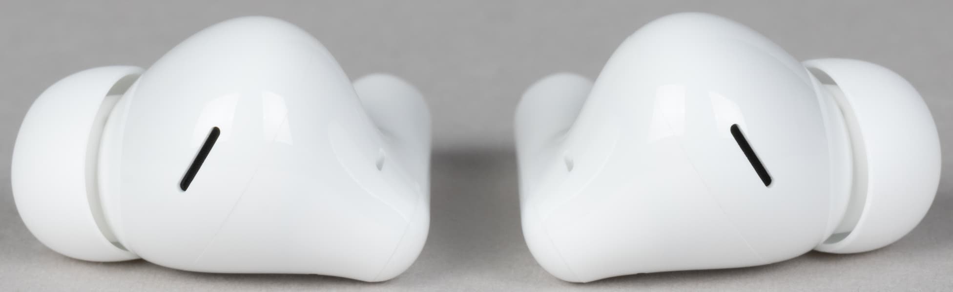 Сверху на округлой части Redmi Buds 6 Pro находятся сравнительно большие щелевидные отверстия микрофонов системы активного шумоподавления.