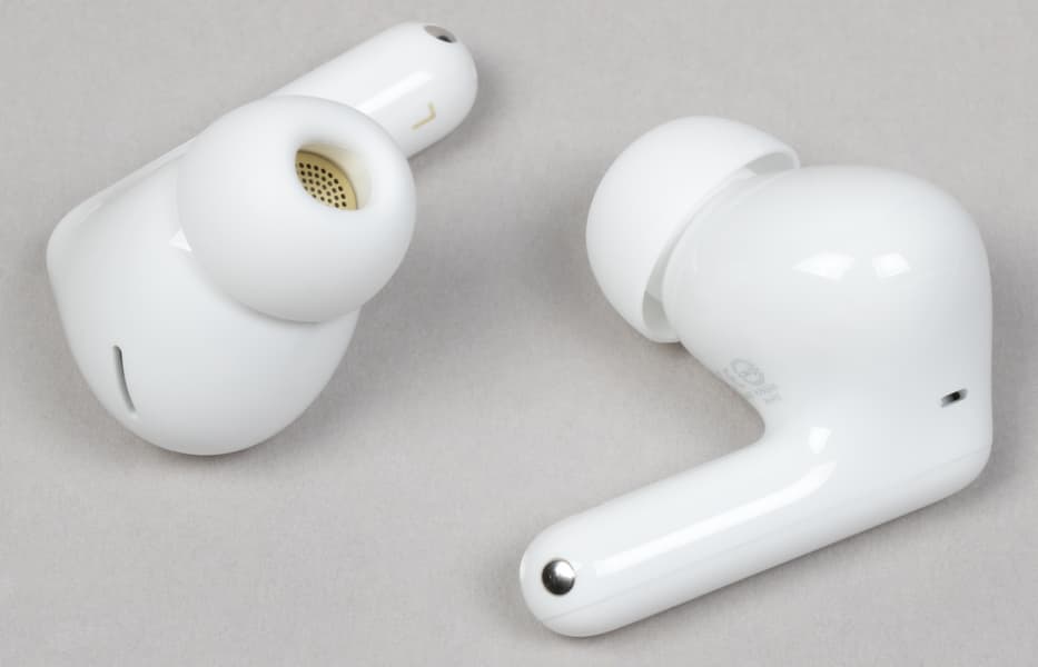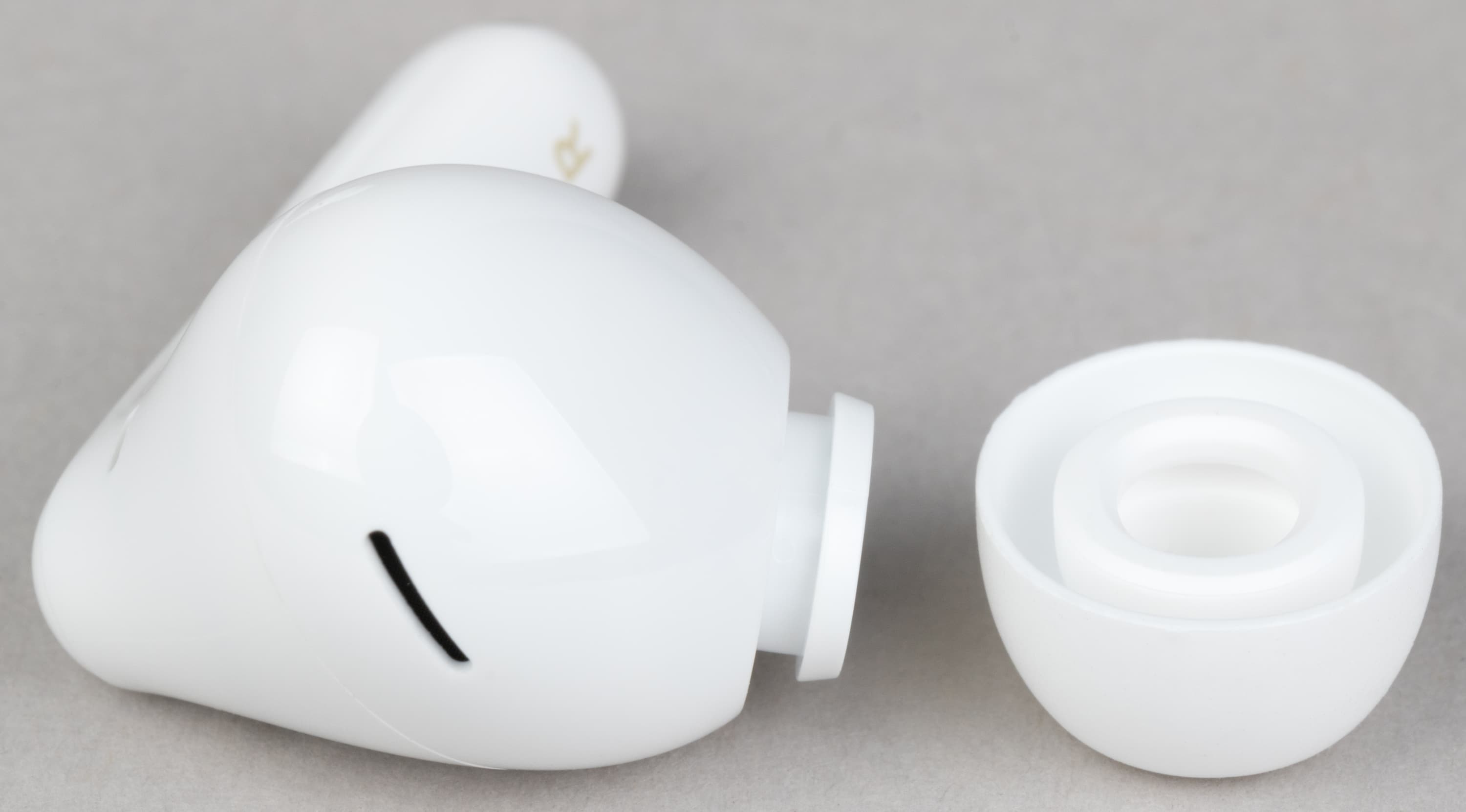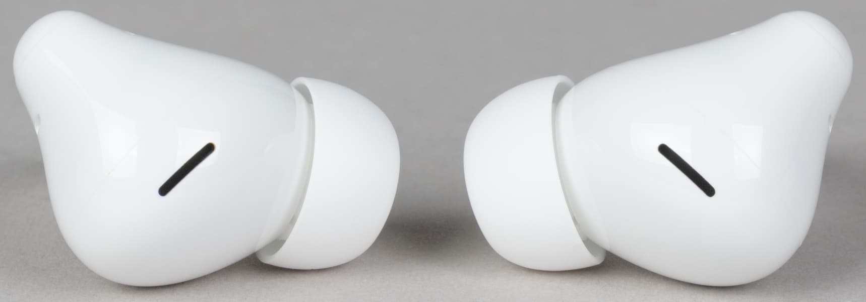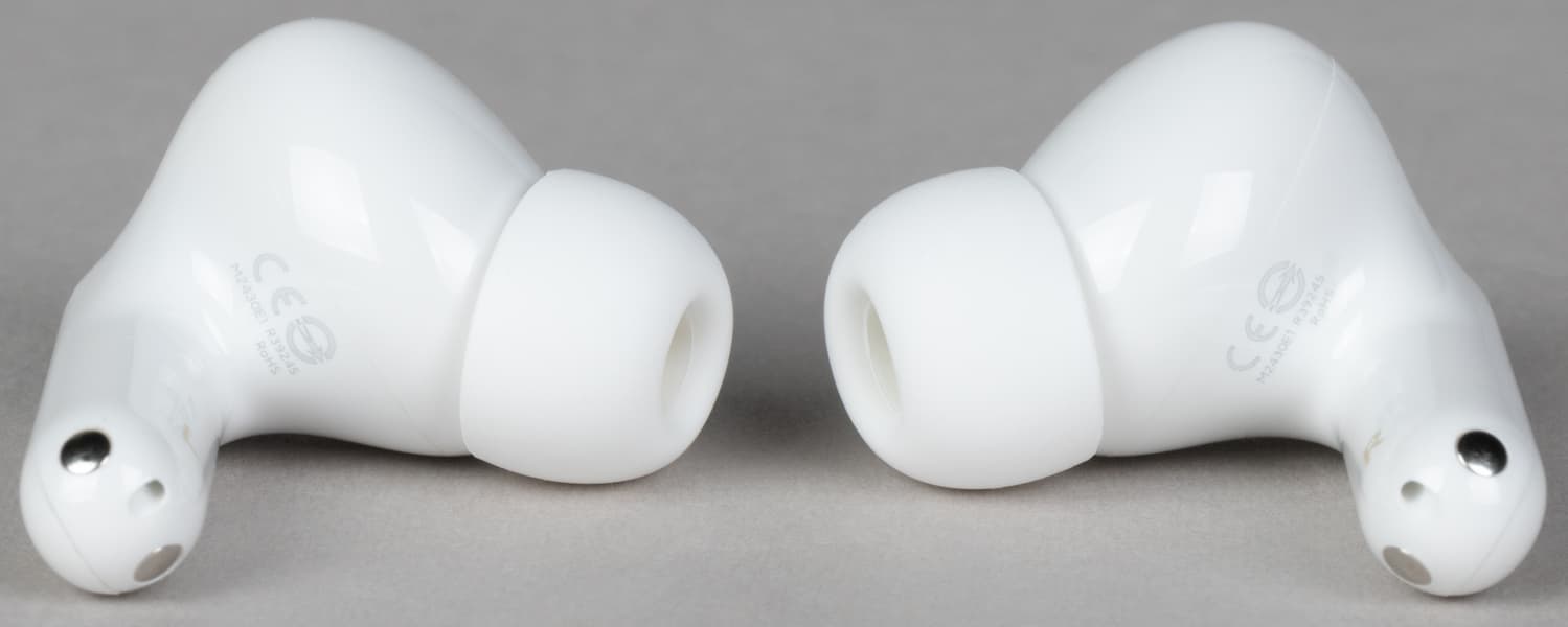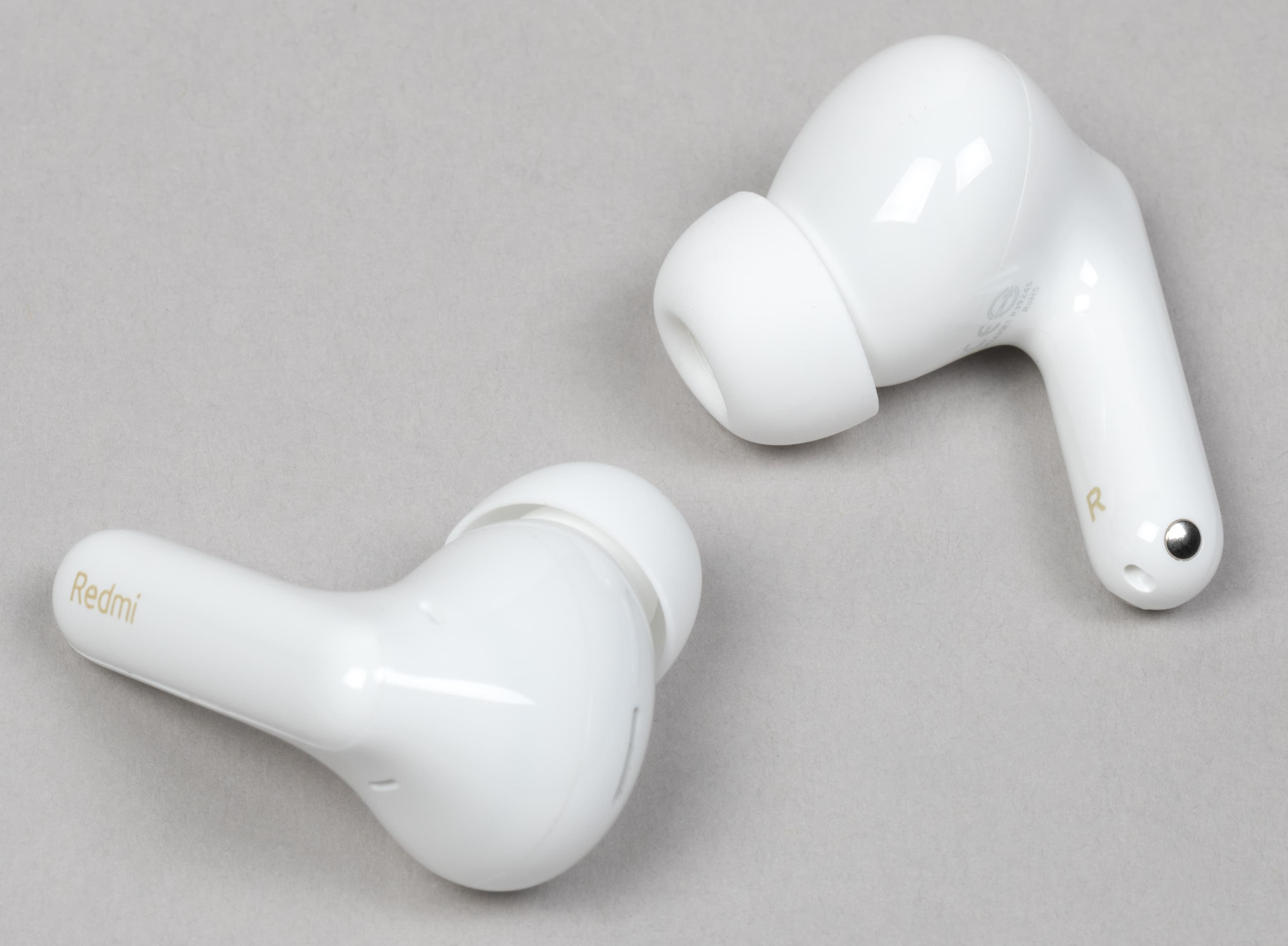 Сверху на округлой части Redmi Buds 6 Pro находятся сравнительно большие щелевидные отверстия микрофонов системы активного шумоподавления.