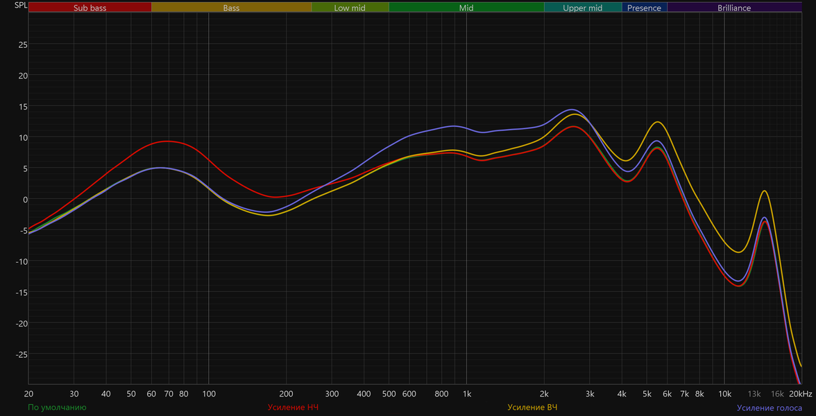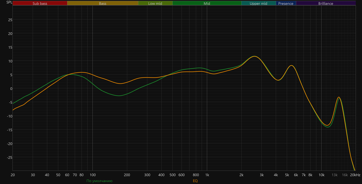 Попробуем создать корректирующий профиль вручную, воспользовавшись эквалайзером в приложении. В основном сосредоточимся на компенсации определяющего специфичность звучания Redmi Buds 6 Pro провала в нижней середине. Ну и заодно самую малость подожмем верхние частоты, чтобы избавиться от лишнего «песка». Всё прекрасно получается, правда в ВЧ-диапазоне эквалайзер работает не так эффективно, как мы ожидали — но это мелочи. В целом звук стал более сбалансированным и универсальным: нижняя середина получилась более плотной, это чуть-чуть снизило ощущение детализации непосредственно средних частот, но с этим легко смириться из-за возросшей выразительности мужского вокала и общего ощущения более стройного тонального баланса.