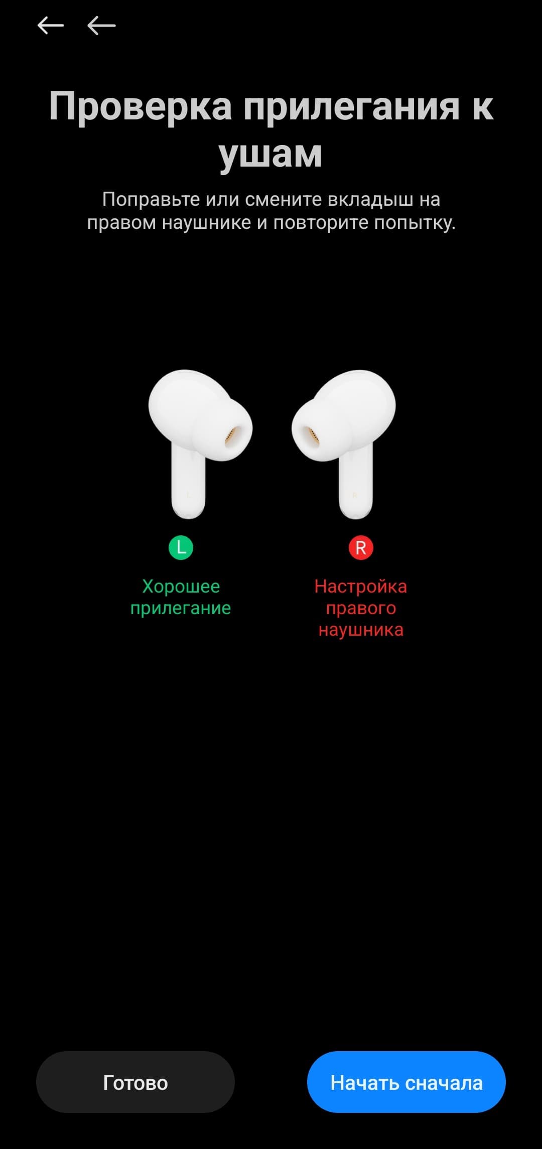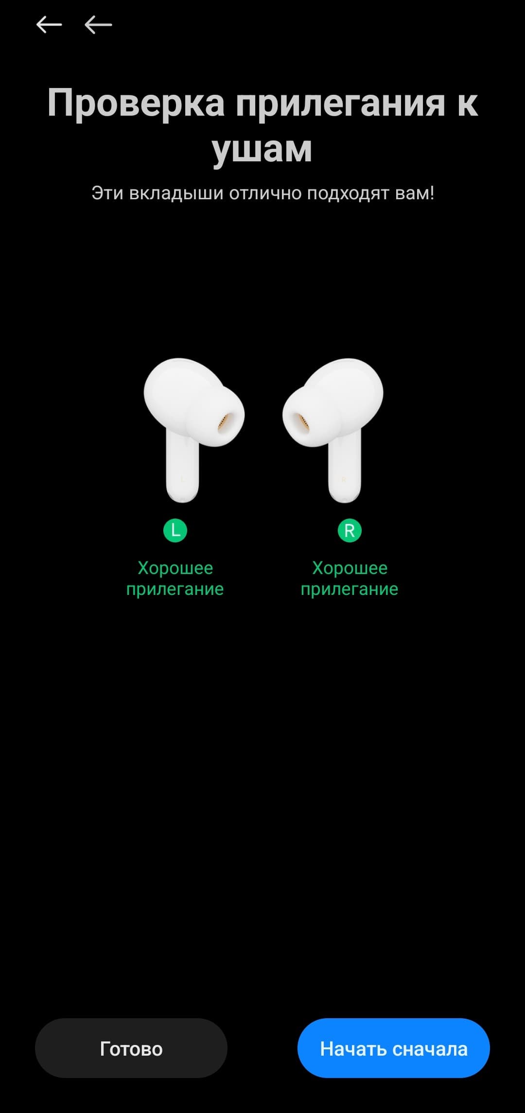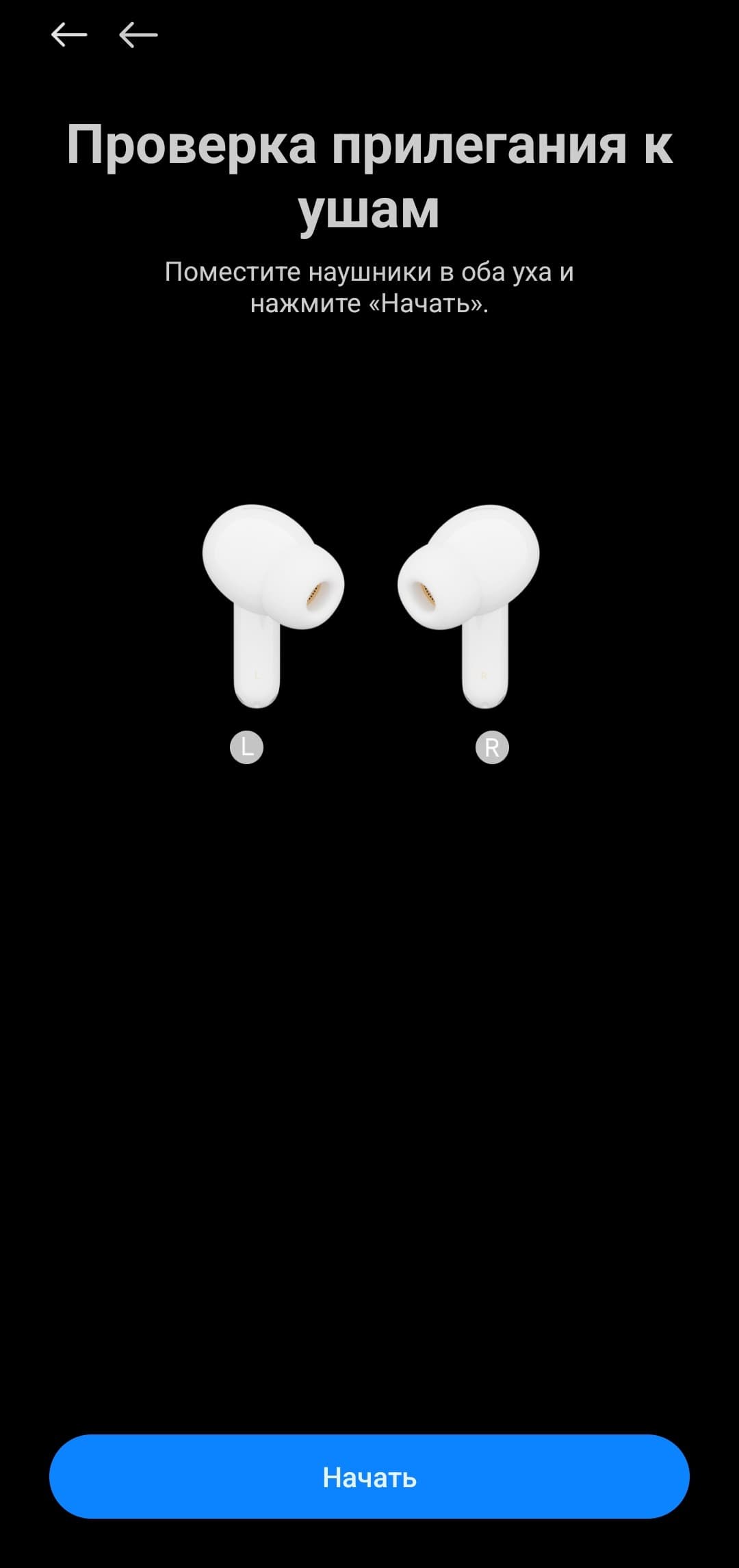 На вкладке расширенных настроек можно включить или выключить датчики ношения, ответственные за работу автопаузы. Там же включаются мультипойнт и автоответ на звонки при надевании гарнитуры. Сервис проверки качества прилегания силиконовых насадок к ушному проходу тоже имеется и работает стандартным образом: наушники проигрывают приятную мелодию, а внешние микрофоны пытаются ее уловить. Если получается — посадка неправильная. Если не получается — значит, всё хорошо. Мы специально ослабили крепление наушника в одном ухе — система тут же это заметила.