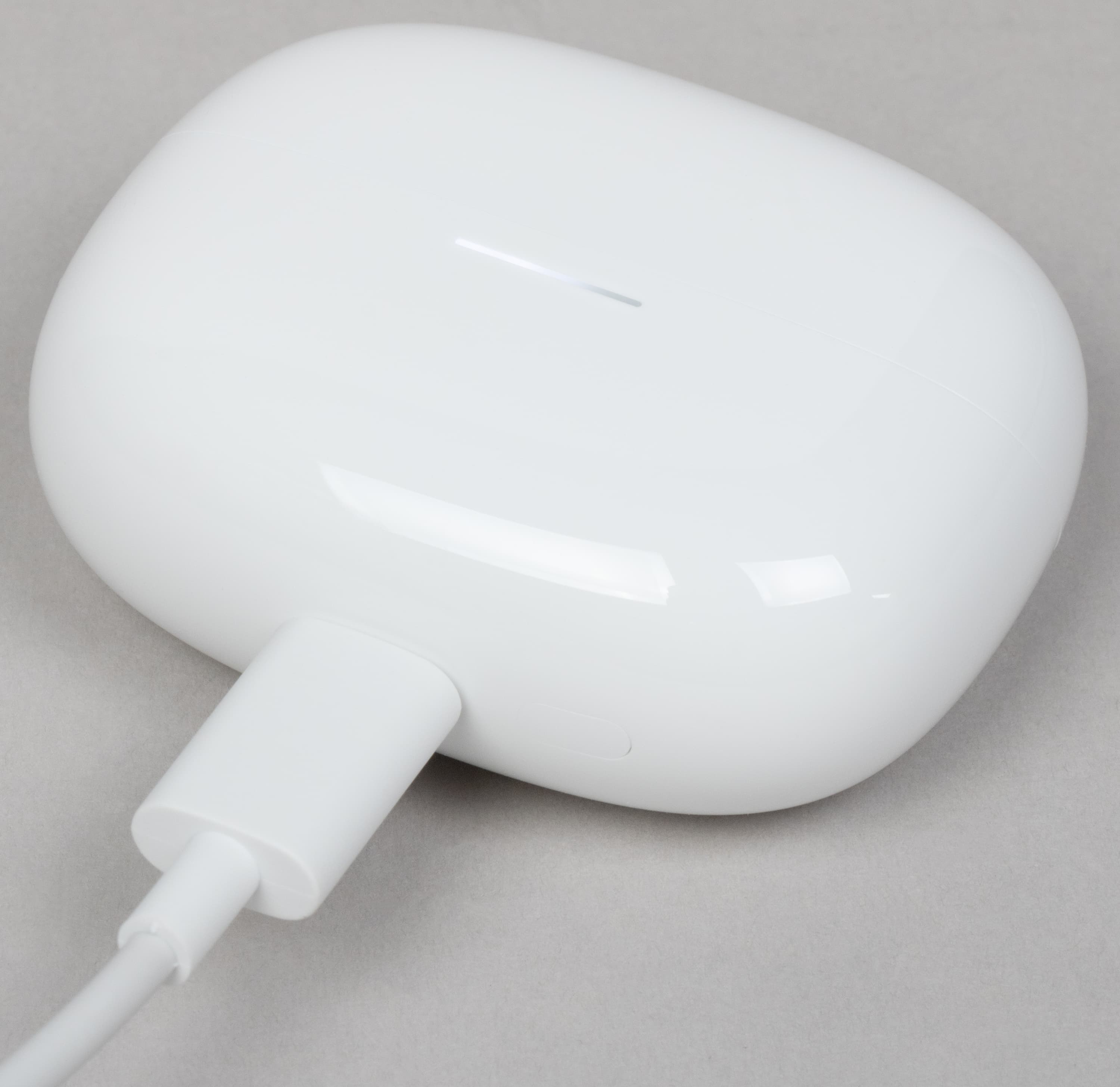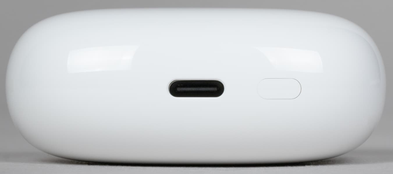 На дне кейса расположен порт USB Type C, служащий для зарядки. Рядом виднеется кнопка запуска процесса сопряжения. Размещена она заподлицо с корпусом и нажимается со значительным усилием — случайно сделать это практически нереально.