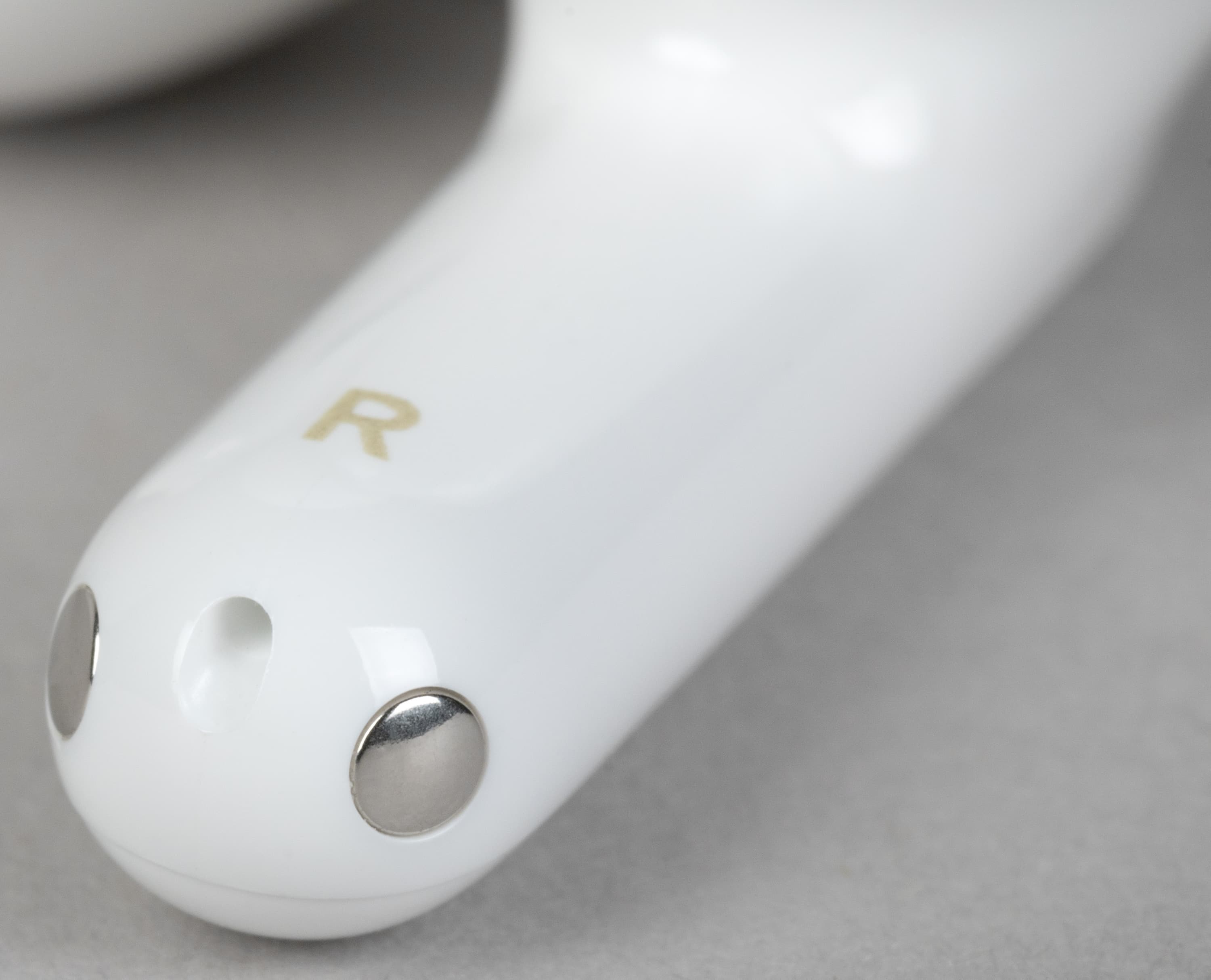 На внешней поверхности ножек расположены сенсорные зоны для управления гарнитурой, в дизайне это никак не отражено. Зато чуть ниже сенсоров нанесено название бренда — не очень крупно, но довольно заметно.