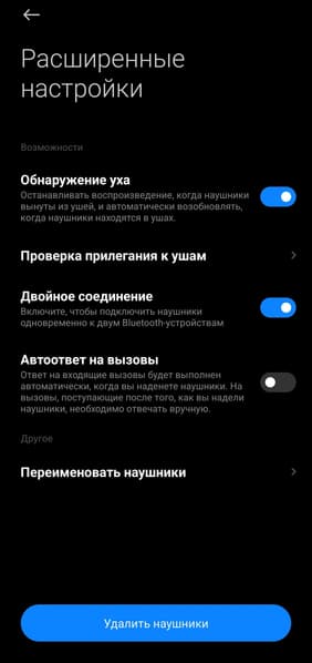 Также на странице расширенных настроек можно переименовать устройство или запустить функцию поиска — заставить наушники воспроизводить громкий высокочастотный сигнал, благодаря которому их можно отыскать, если вокруг более или менее тихо.