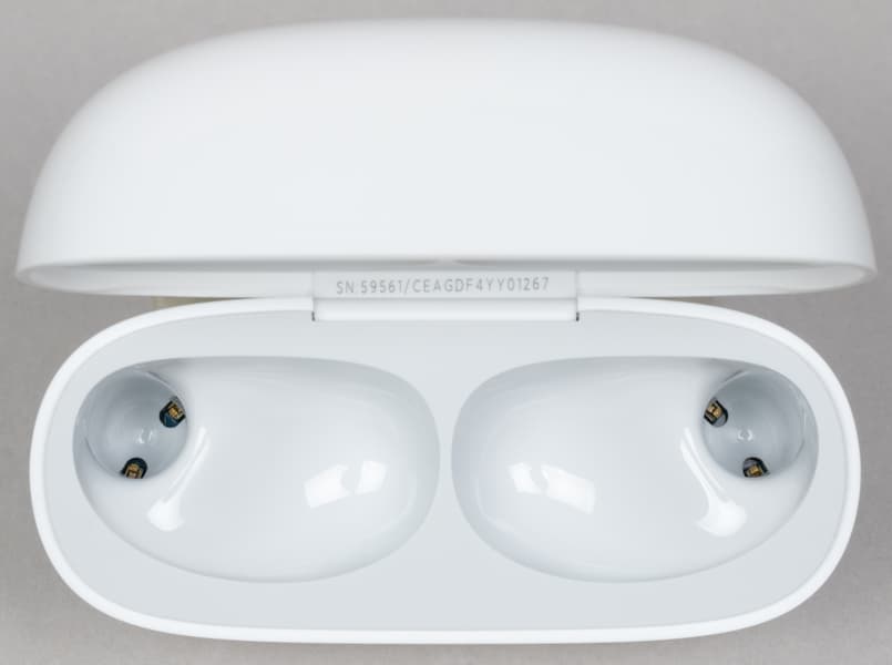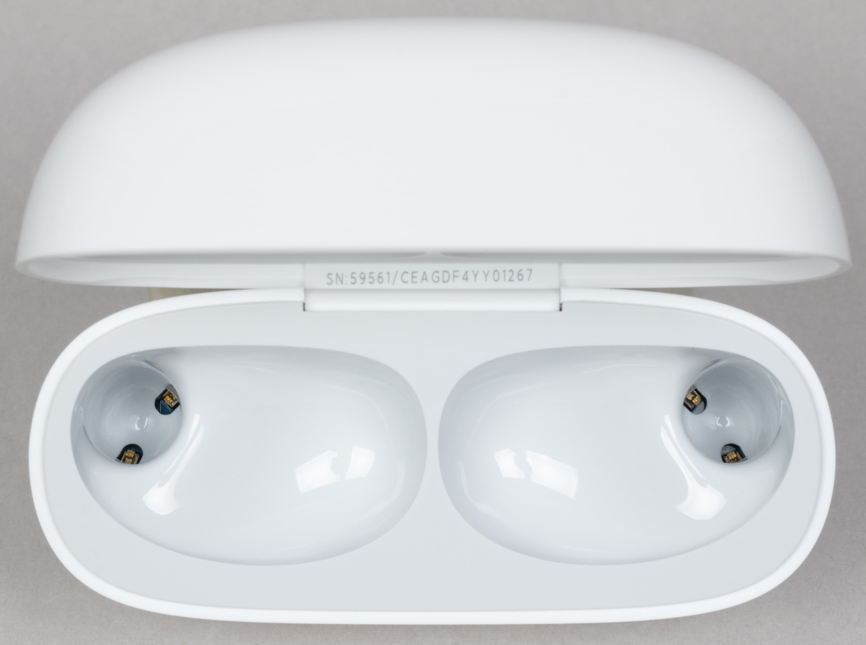 Подпружиненные контакты для зарядки расположены внутри отверстий для ножек наушников, очистить их в случае необходимости будет довольно сложно. На внутренней стороне петли можно найти серийный номер устройства.