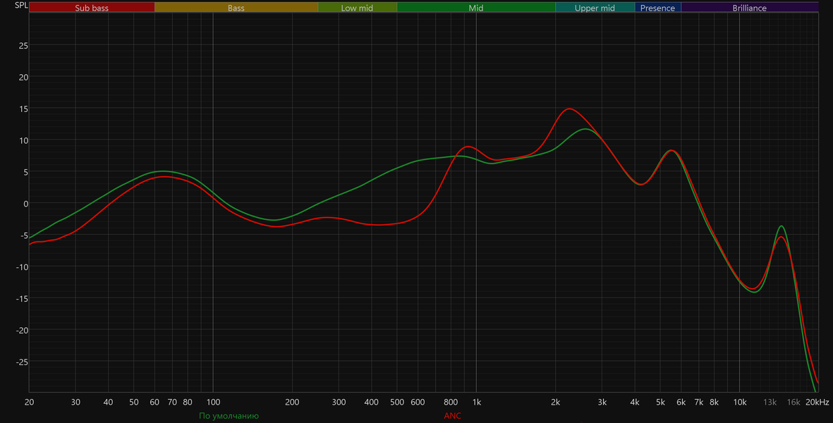 Что касается активного шумоподавления, оно работает весьма впечатляюще — по эффективности лишь немного уступает лучшим флагманским моделям, протестированным нами ранее. Не секрет, что все системы ANC лучше всего справляются с низкочастотными шумами, а вот в среднем диапазоне демонстрируют меньшую эффективность: голоса людей, скрипы в общественном транспорте и прочие подобные звуки часто остаются вне зоны активного подавления. В таких случаях особенно важна пассивная звукоизоляция — плотная посадка, качественные материалы и правильно подобранные насадки играют ключевую роль.