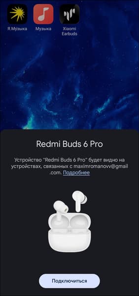 Redmi Buds 6 Pro поддерживает Google Fast Pair, при запуске режима сопряжения на смартфонах под управлением Android появляется всплывающее окно для подключения. Далее устройство привязывается к аккаунту и автоматически «подхватывается» на других гаджетах, где пользователь в него залогинен. Microsoft Swift Pair для соединения с устройствами, работающими на Windows, также поддерживается.
