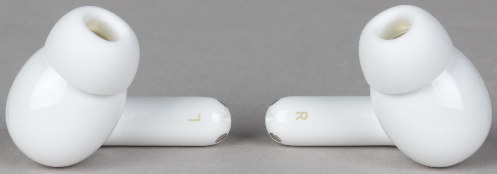 Звуковод имеет среднюю длину и выходит из основной части корпуса чуть под углом — он явно не рассчитан на глубокое проникновение в ушной проход, а значит, лишнего дискомфорта доставлять не будет, но и обеспечивать дополнительную фиксацию — тоже. «Палочки» не слишком длинные: 29 мм в целом, 16 мм — от основания округлой части. Цепляться за волосы, поднятые воротники и шарфы они не будут.