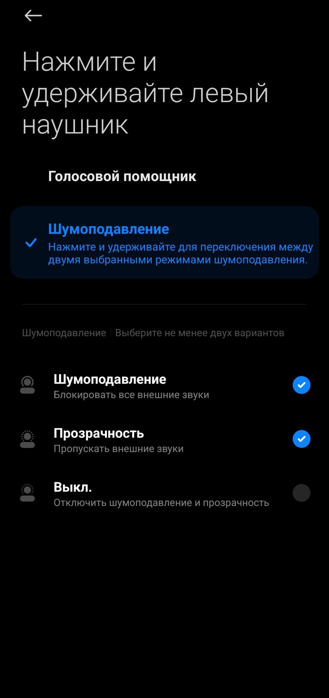 Также доступны персонализированные настройки, которые формируются неким образом в зависимости от индивидуальных особенностей пользователя. Подробной информации об этой функции нет, да и заметной разницы в шумоподавлении при ее включении, будем честны — тоже. Так что будем рассматривать ее как просто приятное дополнение к по-настоящему хорошо работающему «шумодаву».