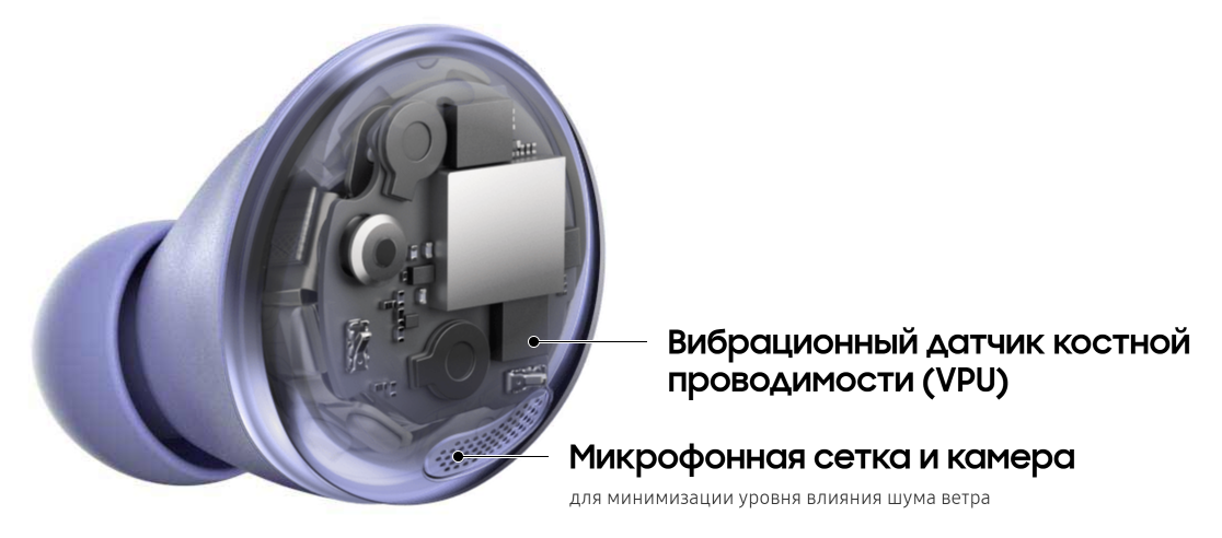 | Дополнительно | Ассистент Bixby, три микрофона, технология костной проводимости, режим «звуковой прозрачности», поддержка технологии Audio 360 |