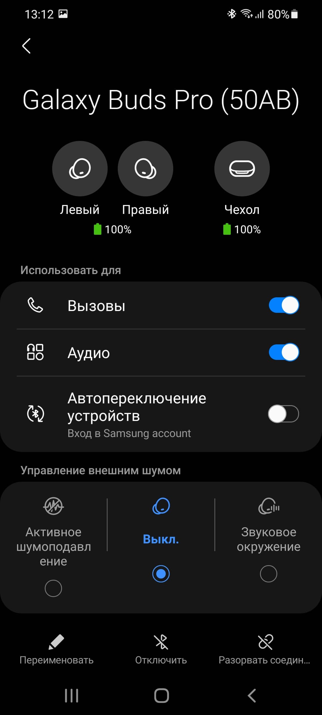 Несмотря на то, что до заявленной производителем планки наушники чуть не дотянули, результаты получились все равно очень даже неплохие. Чуть более 4 часов при включенном активном шумоподавлении — это уверенный средний результат для хороших TWS-гарнитур ведущих брендов. Если сделать потише — наверняка, можно «выжать» из Buds Pro и обещанные 5 часов.