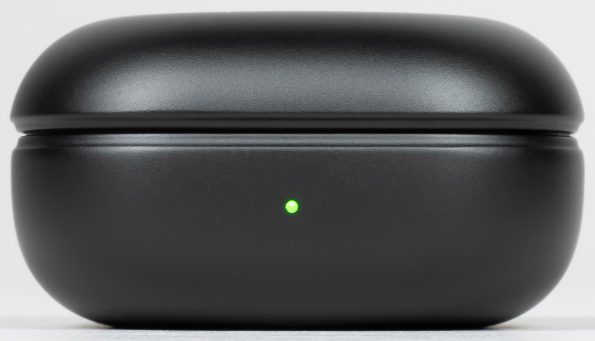 На передней панели кейса расположен маленький светодиодный индикатор, демонстрирующий степень его зарядки. По периметру есть углубление, облегчающее открытие крышки — справиться можно даже одной рукой.