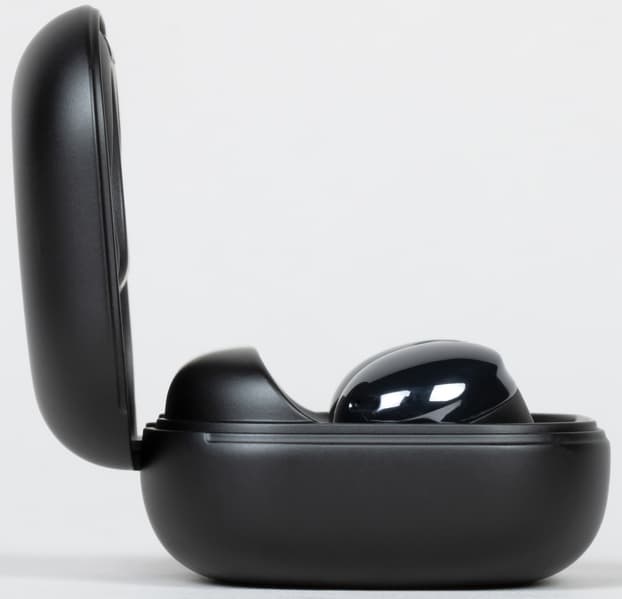 Отверстие внутреннего микрофона расположено в углублении, образуемом выступом на корпусе и его основанием. По всей видимости, это позволяет датчику плотно контактировать с нижней ножкой противозавитка ушной раковины и снимать все нужные вибрации. Однако столь плотный контакт оказывает свое влияние на комфорт посадки — об этом мы поговорим чуть ниже.