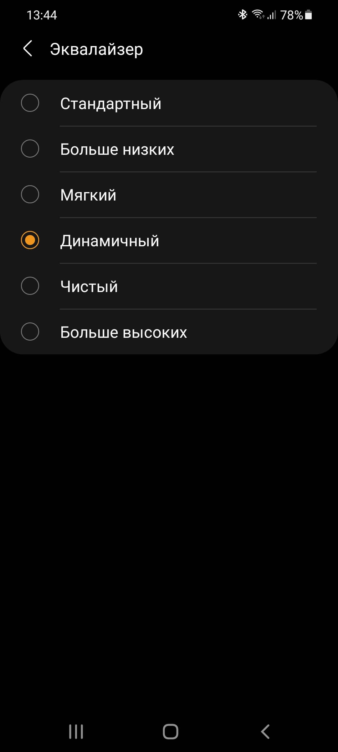 К огромному сожалению, полноценного эквалайзера в приложении нет — лишь ряд пресетов, причем без описания их воздействия на звук. К счастью, у нас есть возможность снять АЧХ при активации каждого из вариантов, чем мы попозже обязательно займемся. А пока поговорим про возможность настройки действий по длинному касанию каждой из сенсорных зон.