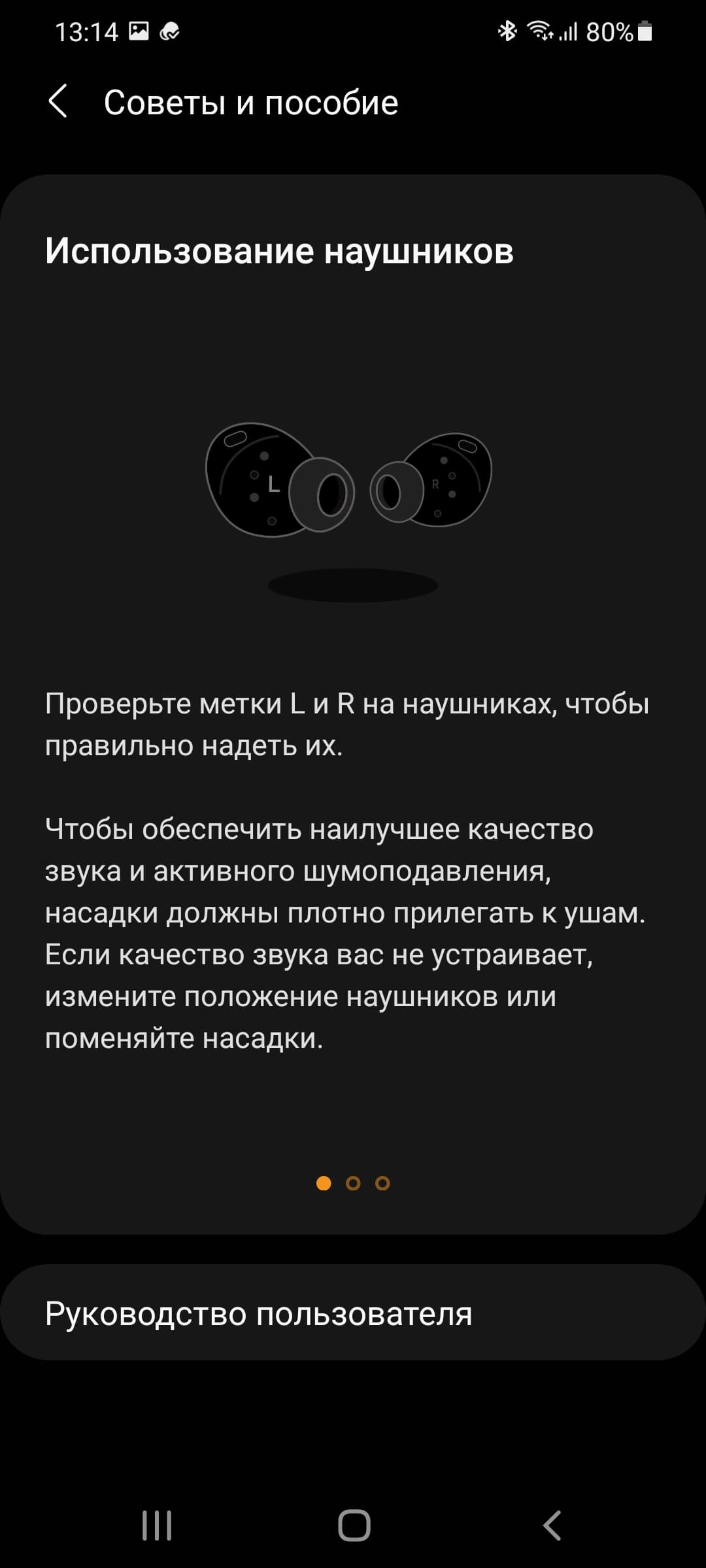 Возможности изменения громкости по умолчанию нет, но можно поменять ряд настроек в программе Galaxy Wearable и получить ее вместо пары не самых востребованных функций… Но обо всем по порядку. Про Galaxy Wearable мы уже как-то говорили, но тогда мы рассматривали другие наушники, работающие с устройством производства не Samsung. Потом сегодня вновь посмотрим на него более-менее подробно. Во время первого запуска приложение настраивается и предлагает подключиться к используемой гарнитуре. Далее на главном экране появляется приглашение посмотреть небольшую инструкцию — стоит потратить на нее пару минут.