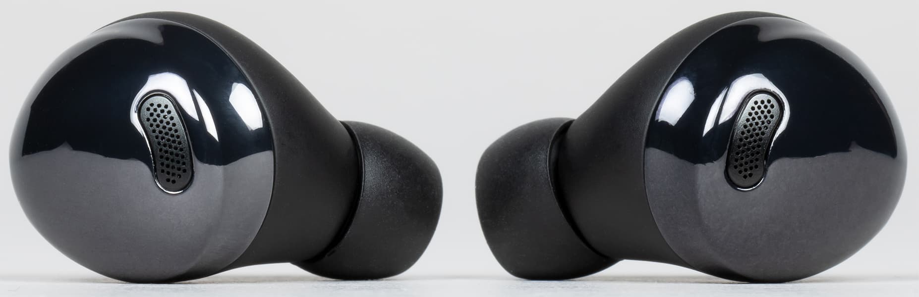 Новые Galaxy Buds Pro тоже ею оснащены, а вот по форме они ближе к «классике» и являются внутриканальными. Если Buds Live — устройство в линейке пока уникальное, то Buds Pro — явные продолжатели дела Galaxy Buds+. У них тоже два драйвера, что для полностью беспроводных моделей до сих пор редкость. А вот разного рода интересных «фишек» стало намного больше: появилось активное шумоподавление, улучшилась водозащита и так далее.