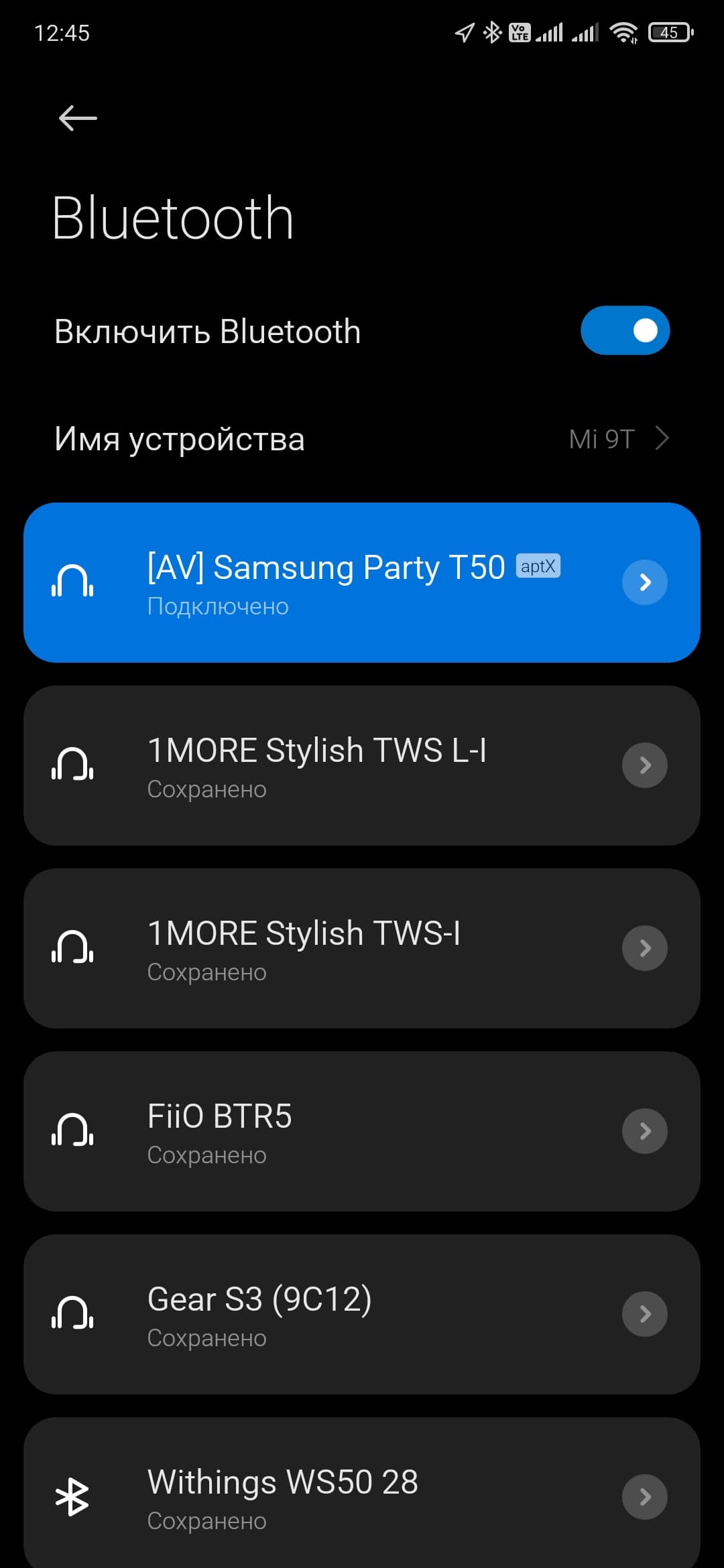 | Поддерживаемые кодеки | SBC, AAC, aptX |