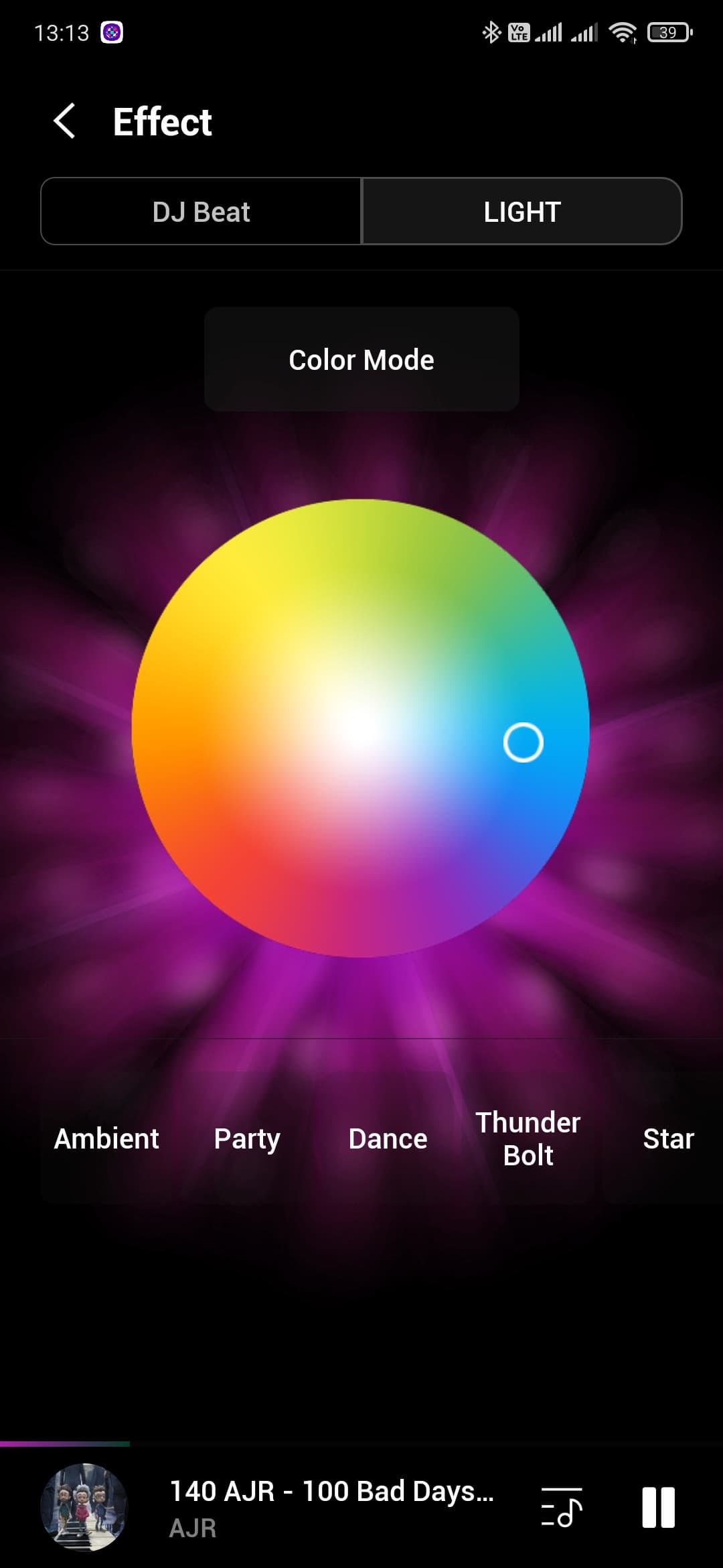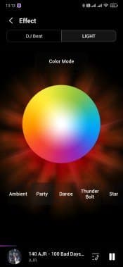 Аудиосистема, конечно, портативная. Но все-таки габаритная — 35×65×32 см, да и весит 11,6 кг. Аккумулятора при этом нет, то есть использовать ее на свежем воздухе не очень-то и получится — скорее, речь идет про вечеринки в загородном доме, например. Подсветка не самая впечатляющая, что нам доводилось видеть — подсвечивается только динамик снизу. Зато она яркая и в динамическом режиме довольно убедительно попадает в ритм звучащей мелодии. Режимов, кстати, целых пять: Party (Вечеринка), Ambient (Окружение), Dance (Танцы), Thunderbolt (Молния), Star (Звезда). Названия, надо сказать, довольно условные. Но выбрать есть из чего.
