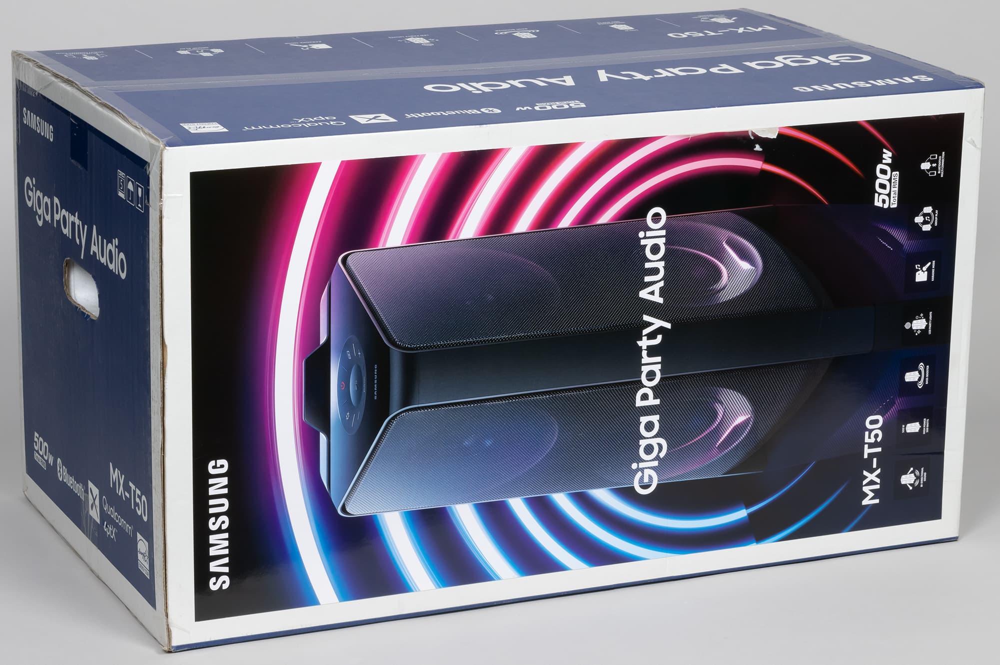 Устройства формата «все для вечеринки в одном корпусе» переживают новый виток популярности, свои решения в этом сегменте представляют различные производители, в том числе и весьма именитые. Сегодня мы посмотрим на колонку Samsung Sound Tower MX-T50 — пожалуй, одно из самых «продвинутых» устройств этого типа, попадавших нам в руки.