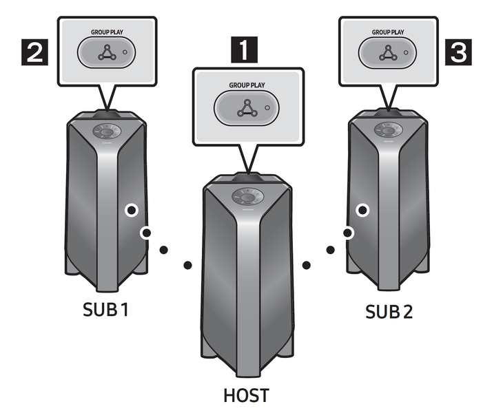 А еще до 10 устройств можно подключить в режиме Audio Group для увеличения мощности и расширения озвучиваемого пространства. Находим на колонке, которая будет выступать в качестве главной, кнопку Group Play — нажимаем на нее. Далее поочередно нажимаем на нее на всех колонках, которые хотим сделать ведомыми — и готово.
