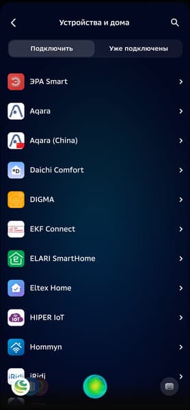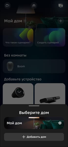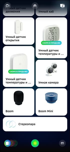 Видимо, в целях повышения уровня безопасности, приложение просит подтвердить серийный номер подключаемой колонки, далее она появляется в списке устройств, где также обнаруживается много других приборов — от светодиодных лент до камер. Есть и множество датчиков, но бо́льшая часть из них пока не поступила в продажу.