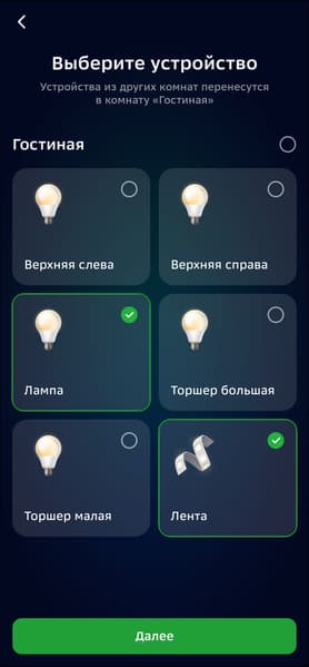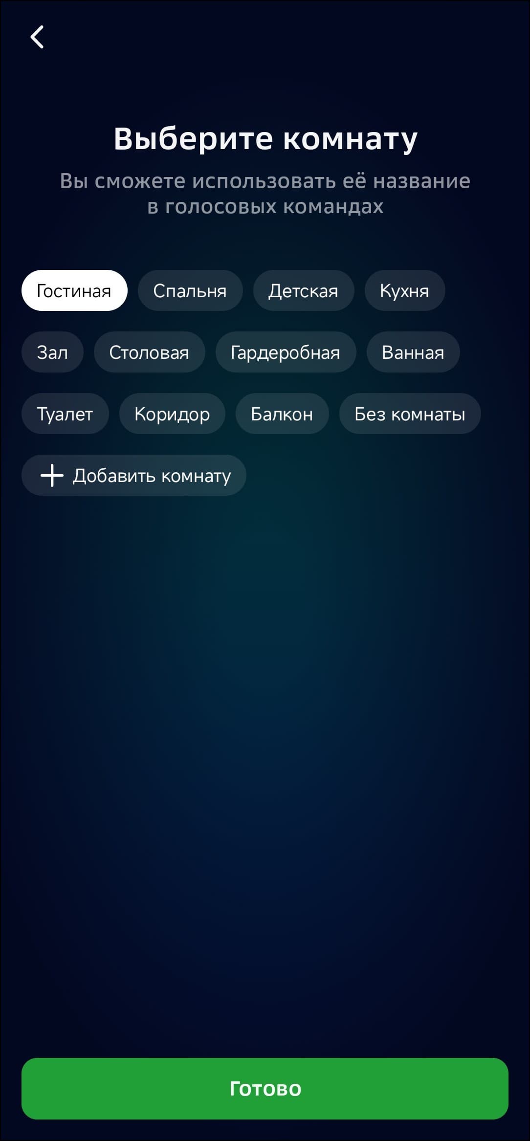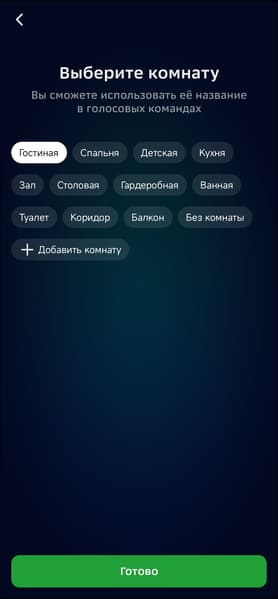 После привязки аккаунта выбираем комнату, куда попадут все наши устройства. Сразу заметим, что потом их можно свободно перемещать между помещениями.