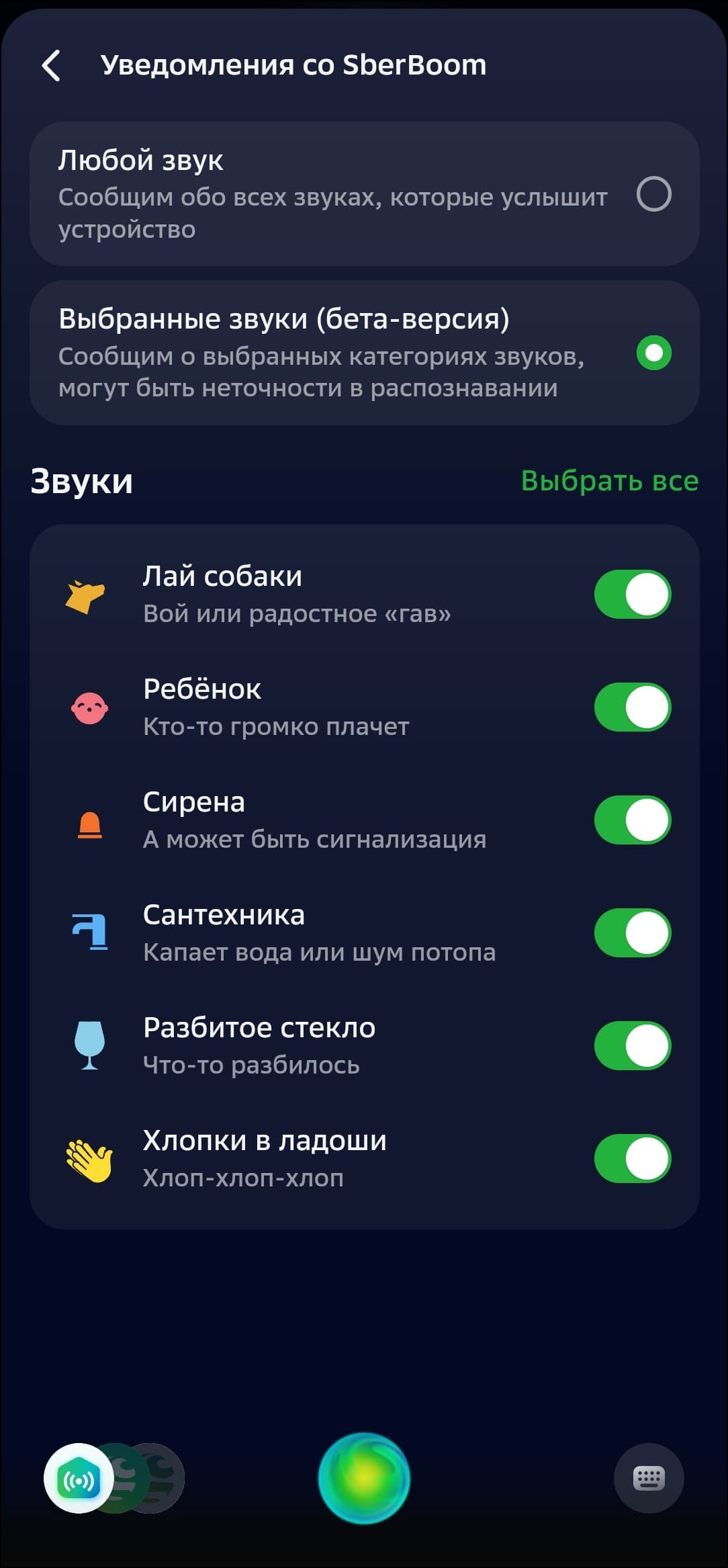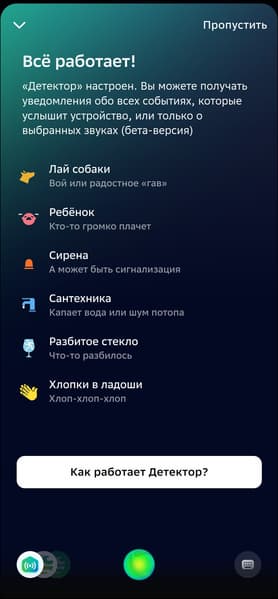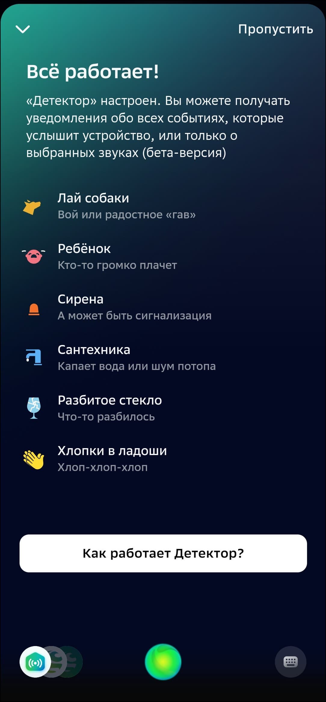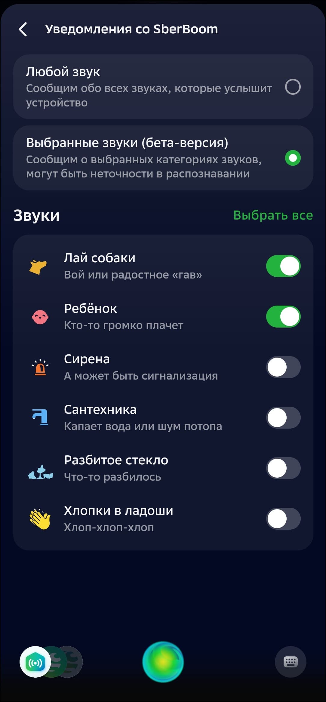 После первичной настройки можно выбрать типы звука, о которых необходимо получать оповещения. Мы выбрали лай собаки и плач ребенка.