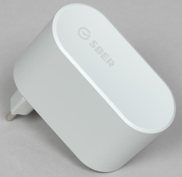 Дизайн у БП простой и приятный, за счет отсутствия острых углов он выглядит легким и компактным. На внешнюю панель нанесен логотип «Сбера».