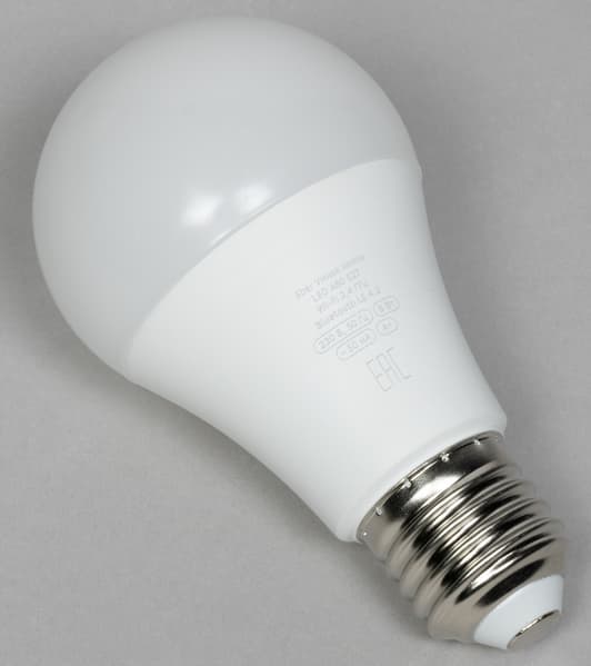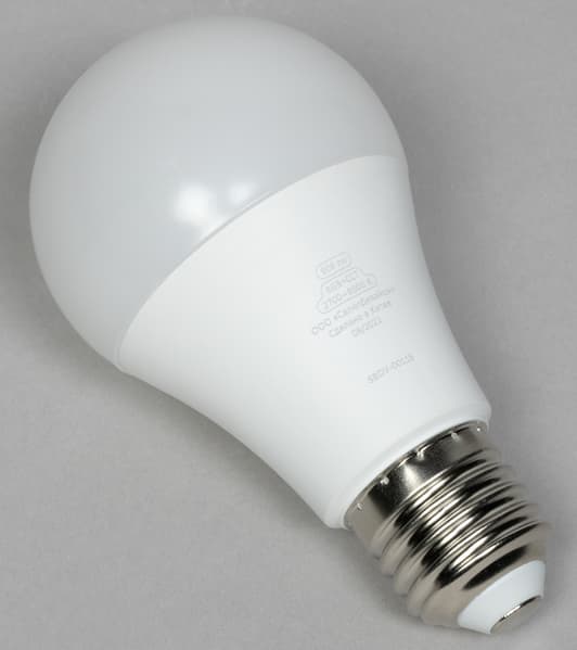 Если немного покрутить лампочку в руках, на боковых поверхностях можно обнаружить технические данные устройства: мощность 9 Вт, световой поток до 806 лм и так далее.