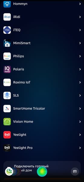 Список производителей устройств, совместимых с «умным» домом «Сбера», растет, но пока насчитывает всего лишь 18 пунктов — маловато, конечно. Особенно досадно, что нет возможности интегрировать в него популярные устройства компании Xiaomi. А вот светодиодную ленту Yeelight добавить удалось. При этом приборы данного производителя входят в экосистему Xiaomi и легко управляются с помощью ПО MiHome. Но привязать их к приложению «Салют!» оттуда не выйдет, нужно пользоваться именно фирменным приложением Yeelight. При этом для авторизации используется аккаунт Xiaomi.