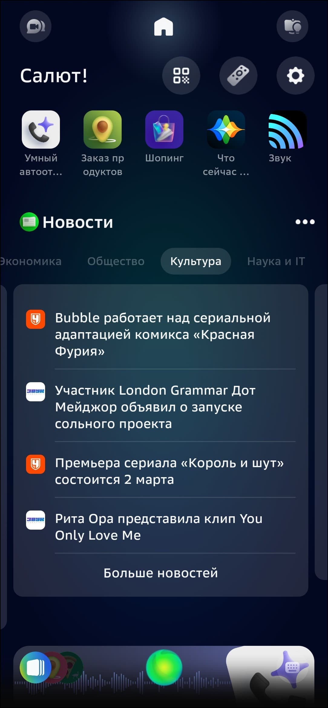 | Управление | сенсорные клавиши, голосовой ассистент Салют |