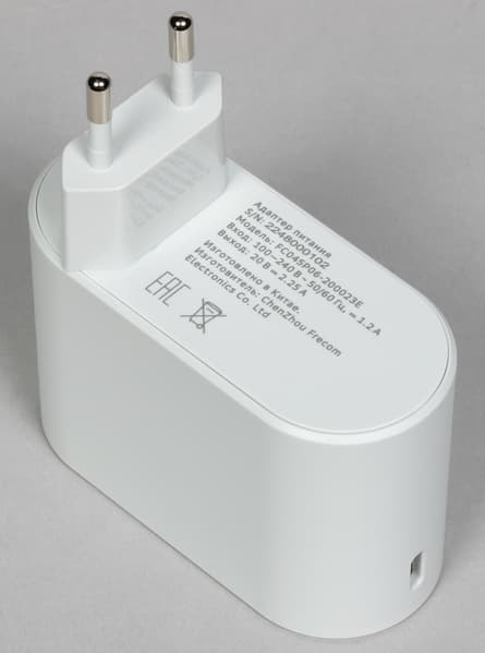 Внутри углубления под наклейкой с серийным номером размещен порт USB Type C для подключения блока питания. Выемка для кабеля сделана довольно-таки крупной, потому он помещается в нее без каких-либо усилий.