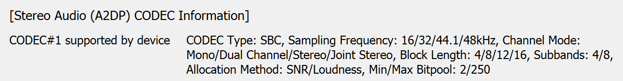 Активировать подключение можно фразой «Салют, включи Bluetooth». Мультипойнт не поддерживается, список поддерживаемых кодеков и их режимов мы традиционно получили с помощью утилиты Bluetooth Tweaker. Кодек всего один — базовый SBC, в данном случае его возможностей вполне достаточно.
